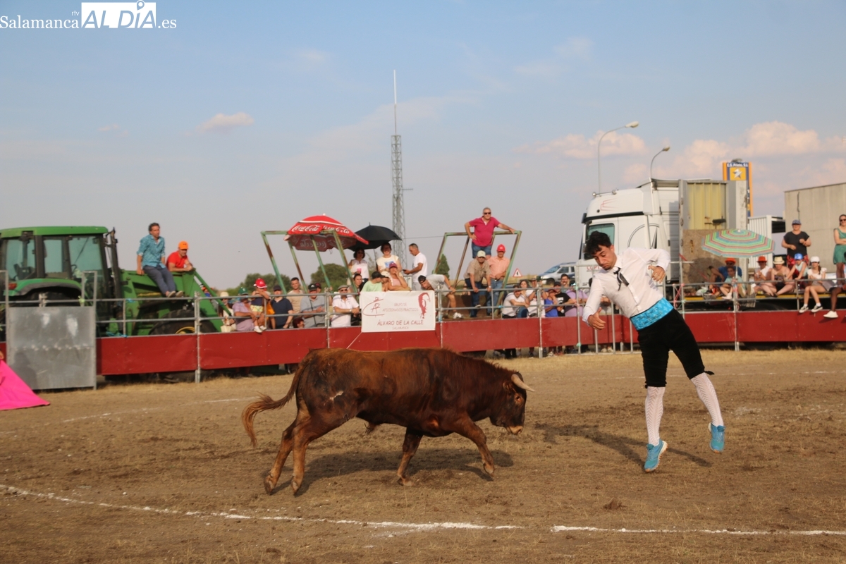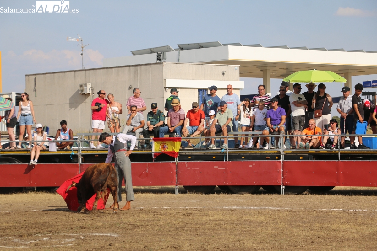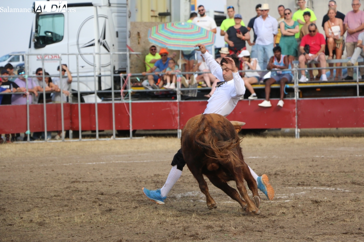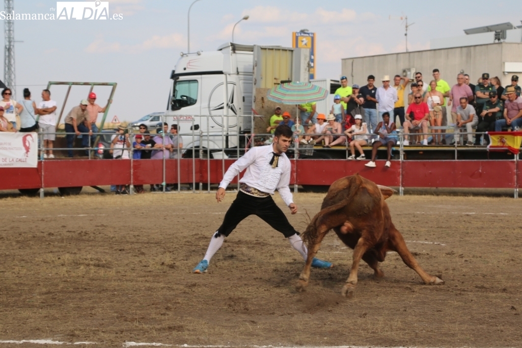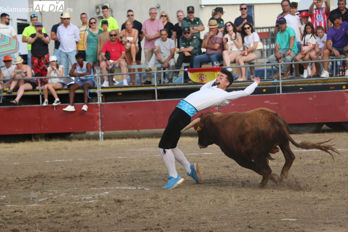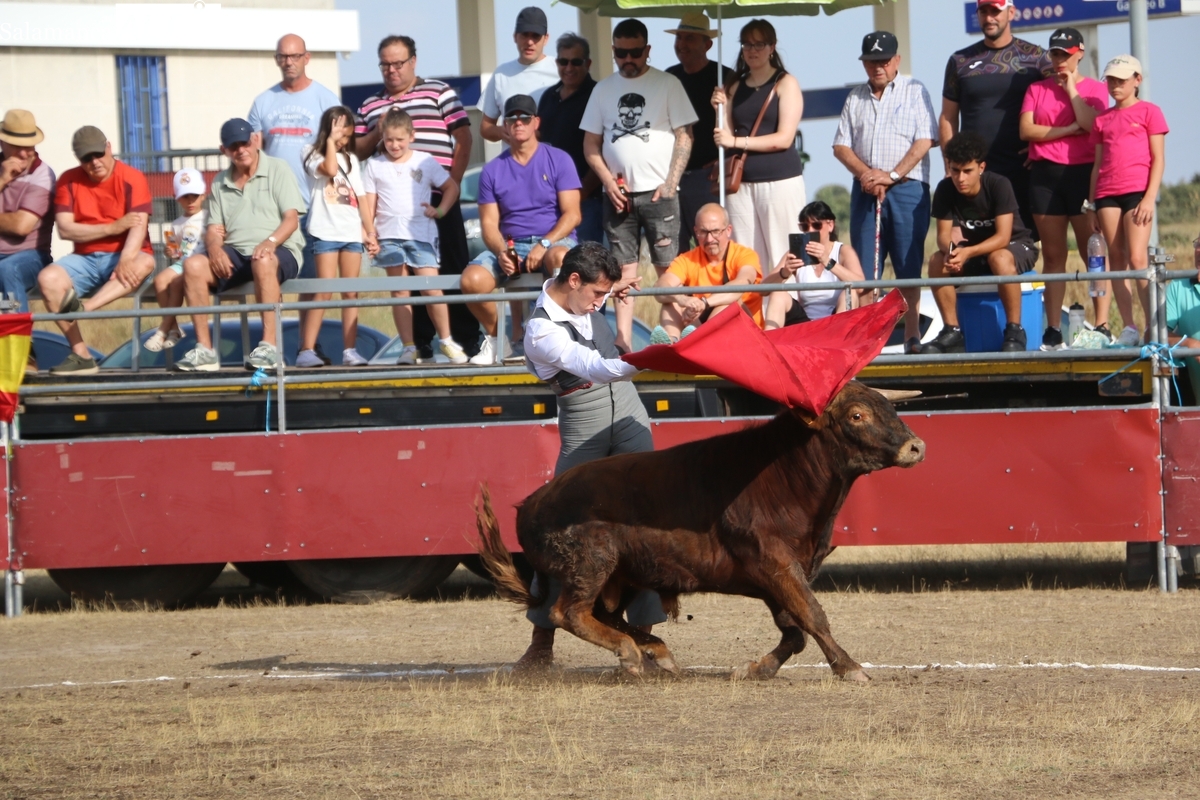 Después de una mañana dedicada a los más pequeños con Encierros Infantiles Huertos y su ganadería de carretones, la tarde daría paso al VII Tentadero de Aficionados Prácticos y Exhibición de Recortadores, festejo con ganado de Ignacio López Chaves, y en el que estaban anunciados los aficionados prácticos: Eladio Jiménez ‘Layi’, de la Escuela de Ciudad Rodrigo; Alberto Campos, de la Escuela Álvaro de la Calle; Pablo Mangas, de la Escuela Damián Castaño; y Gonzalo Rivilla, de la Escuela Salvador Ruano. También habría espacio para los aficionados a los recortes, apartado en el intervendrían los recortadores: Víctor Revesado, de Yecla de Yeltes; y Unai Aires y Álvaro ‘Chispas’, ambos de Lumbrales, y este último en sustitución de Óscar Ramos, también de Lumbrales; y de Javi Martín, de Vitigudino, ambos lesionados y que no pudieron actuar. En cualquier caso, los tres intervinientes dieron un recital de recortes, además de los saltos de Víctor Revesado para rematar la 'faena'. Finalizada su actuación, muy aplaudida por el público, con presencia importante de lumbraleses, el festejo daría paso a una capea abierta a todos los aficionados.