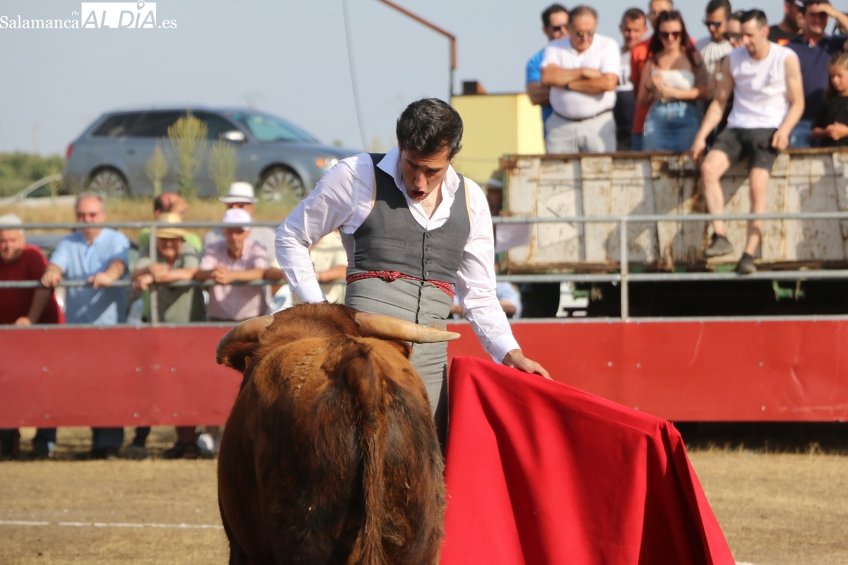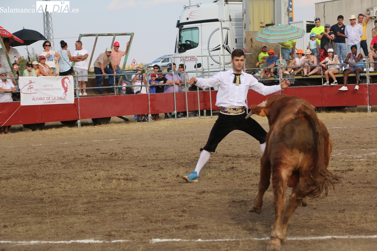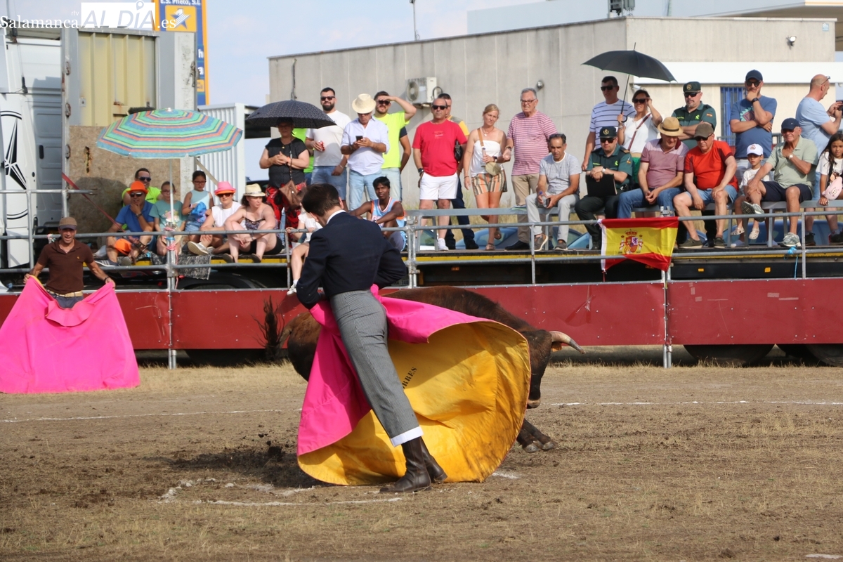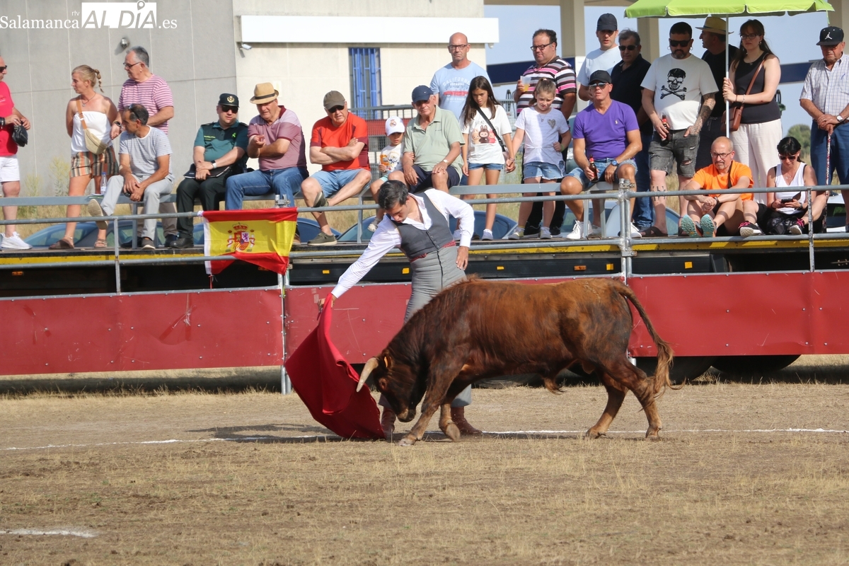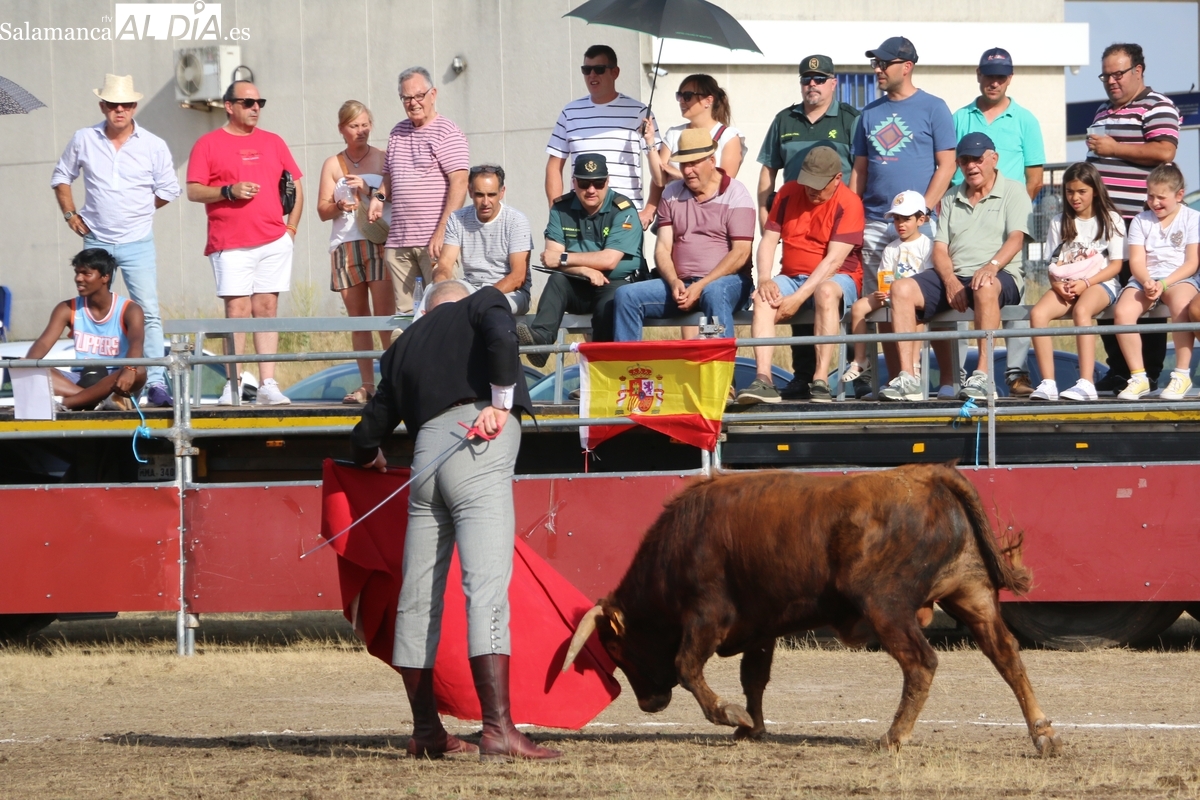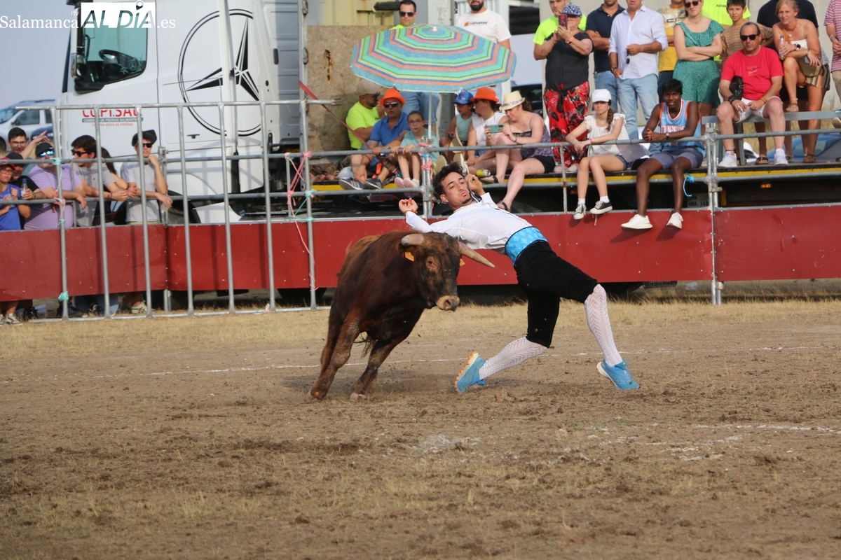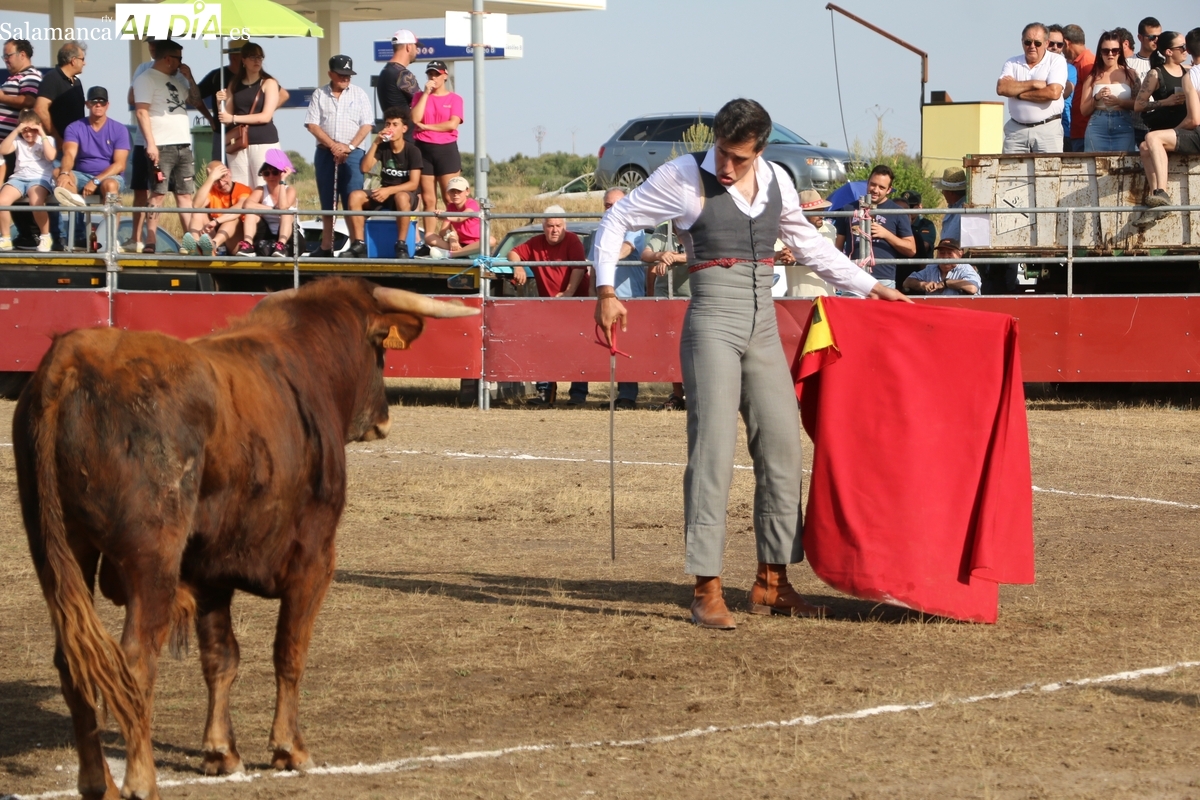 Después de una mañana dedicada a los más pequeños con Encierros Infantiles Huertos y su ganadería de carretones, la tarde daría paso al VII Tentadero de Aficionados Prácticos y Exhibición de Recortadores, festejo con ganado de Ignacio López Chaves, y en el que estaban anunciados los aficionados prácticos: Eladio Jiménez ‘Layi’, de la Escuela de Ciudad Rodrigo; Alberto Campos, de la Escuela Álvaro de la Calle; Pablo Mangas, de la Escuela Damián Castaño; y Gonzalo Rivilla, de la Escuela Salvador Ruano. También habría espacio para los aficionados a los recortes, apartado en el intervendrían los recortadores: Víctor Revesado, de Yecla de Yeltes; y Unai Aires y Álvaro ‘Chispas’, ambos de Lumbrales, y este último en sustitución de Óscar Ramos, también de Lumbrales; y de Javi Martín, de Vitigudino, ambos lesionados y que no pudieron actuar. En cualquier caso, los tres intervinientes dieron un recital de recortes, además de los saltos de Víctor Revesado para rematar la 'faena'. Finalizada su actuación, muy aplaudida por el público, con presencia importante de lumbraleses, el festejo daría paso a una capea abierta a todos los aficionados.