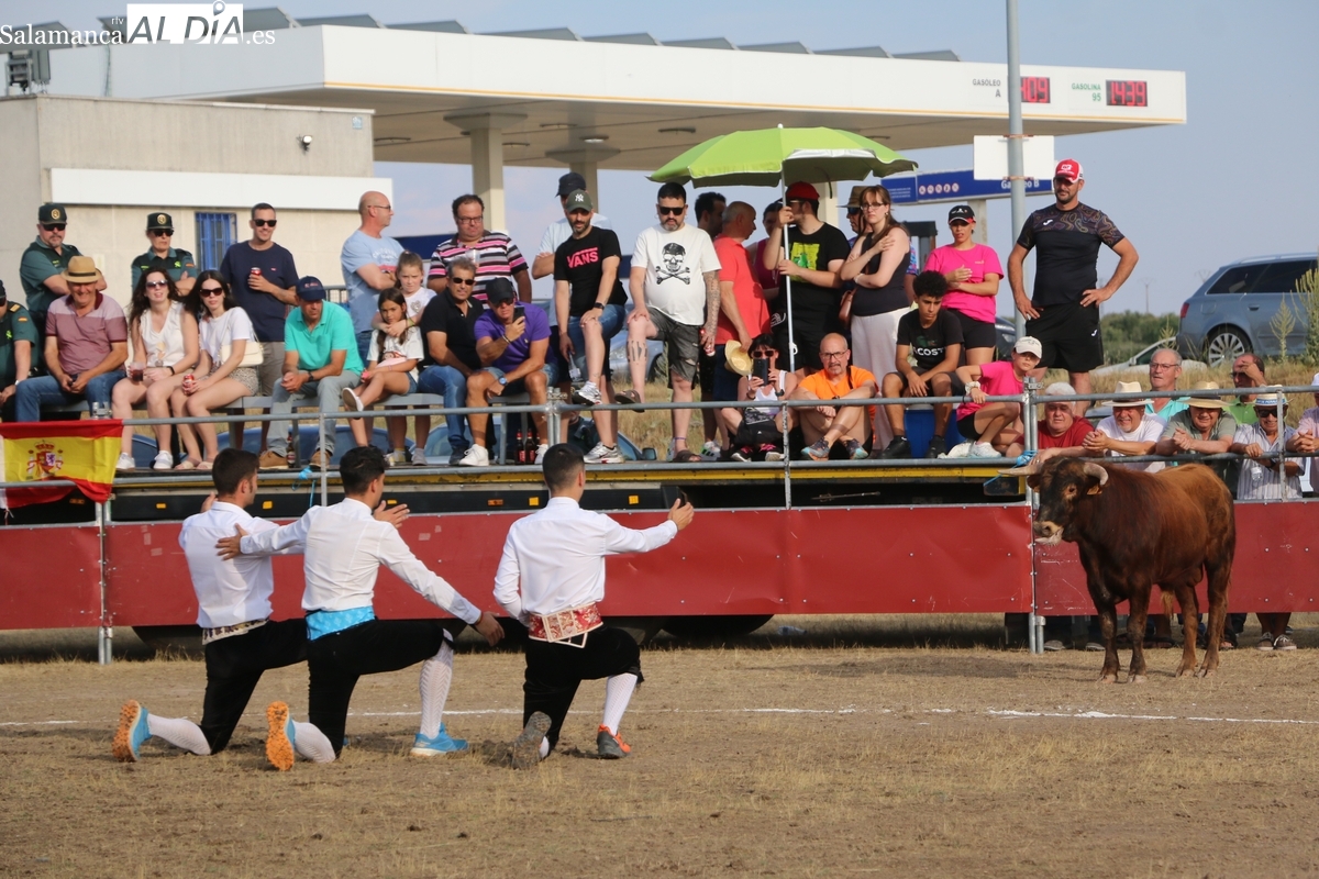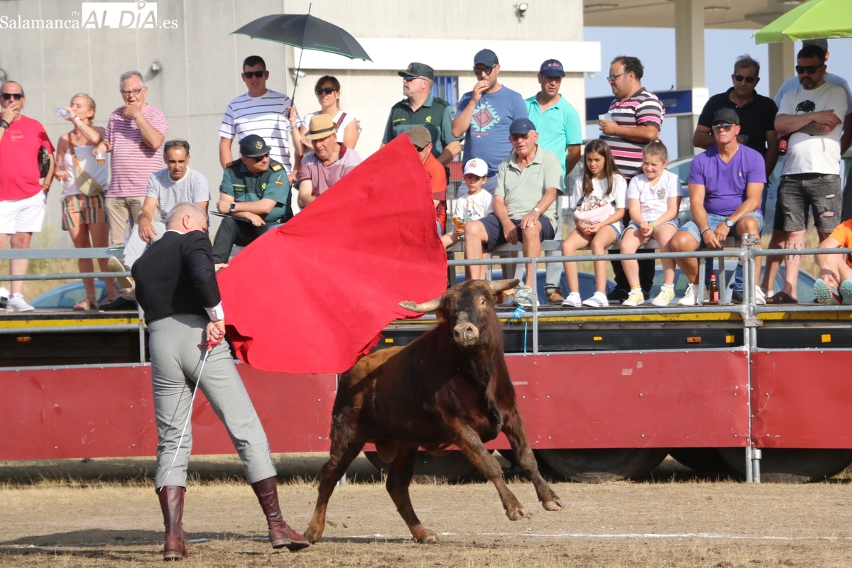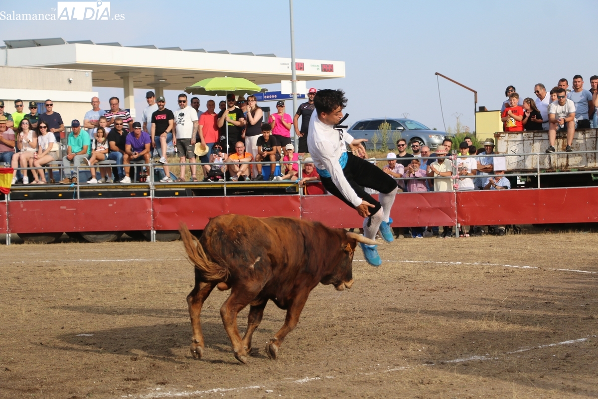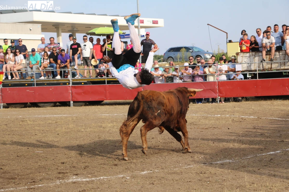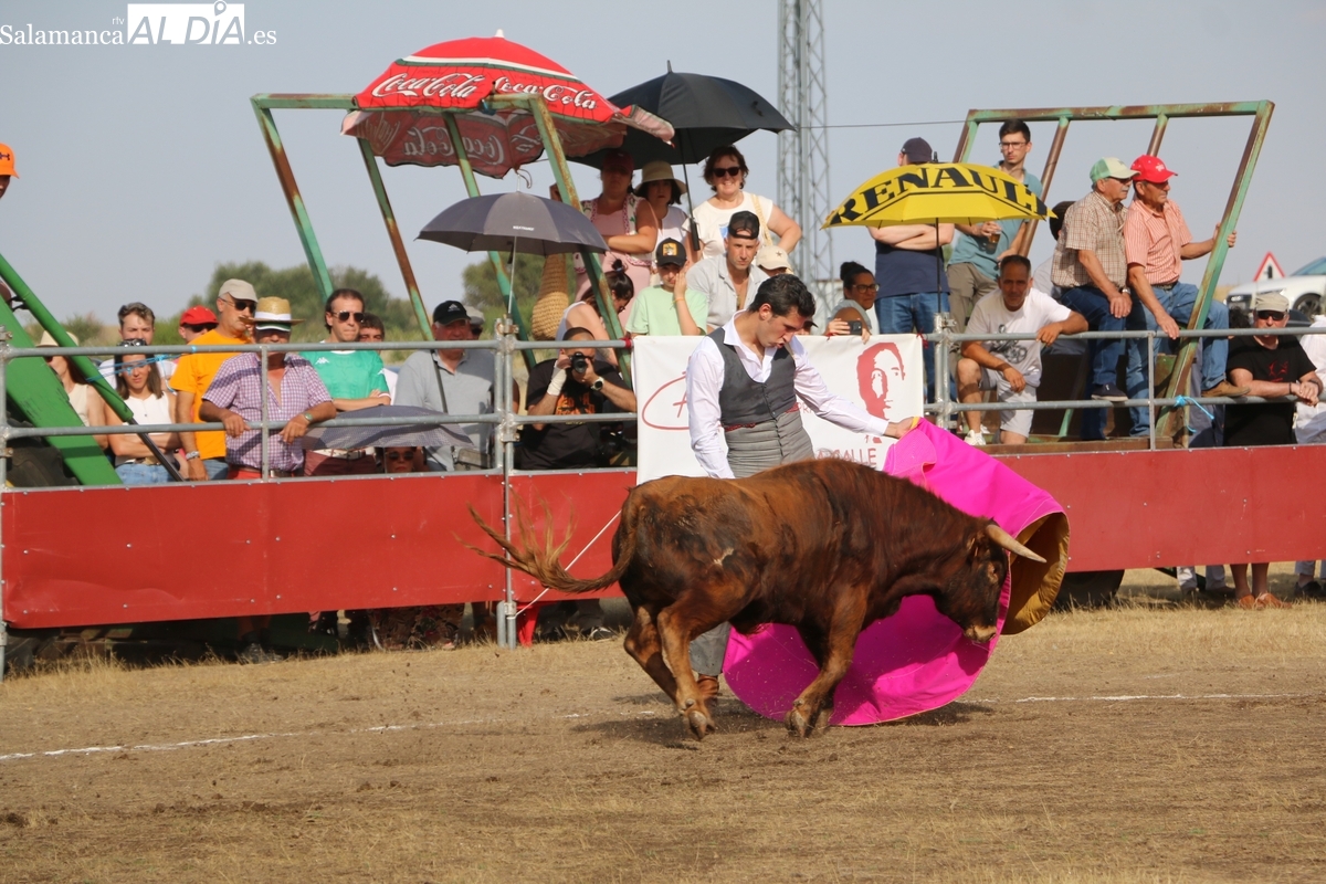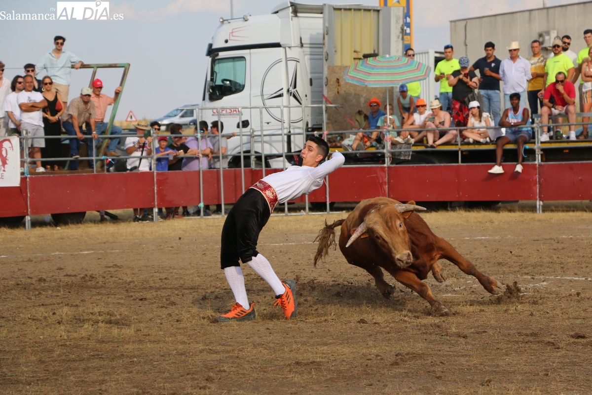 Después de una mañana dedicada a los más pequeños con Encierros Infantiles Huertos y su ganadería de carretones, la tarde daría paso al VII Tentadero de Aficionados Prácticos y Exhibición de Recortadores, festejo con ganado de Ignacio López Chaves, y en el que estaban anunciados los aficionados prácticos: Eladio Jiménez ‘Layi’, de la Escuela de Ciudad Rodrigo; Alberto Campos, de la Escuela Álvaro de la Calle; Pablo Mangas, de la Escuela Damián Castaño; y Gonzalo Rivilla, de la Escuela Salvador Ruano. También habría espacio para los aficionados a los recortes, apartado en el intervendrían los recortadores: Víctor Revesado, de Yecla de Yeltes; y Unai Aires y Álvaro ‘Chispas’, ambos de Lumbrales, y este último en sustitución de Óscar Ramos, también de Lumbrales; y de Javi Martín, de Vitigudino, ambos lesionados y que no pudieron actuar. En cualquier caso, los tres intervinientes dieron un recital de recortes, además de los saltos de Víctor Revesado para rematar la 'faena'. Finalizada su actuación, muy aplaudida por el público, con presencia importante de lumbraleses, el festejo daría paso a una capea abierta a todos los aficionados.