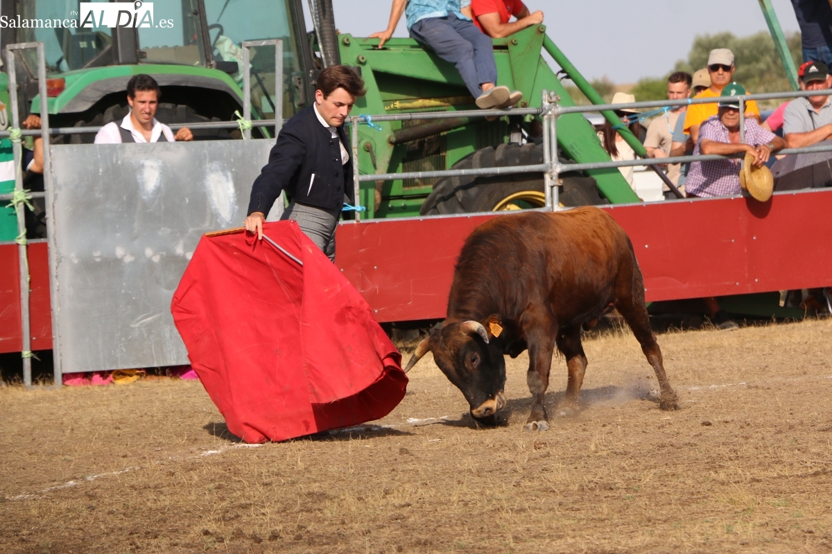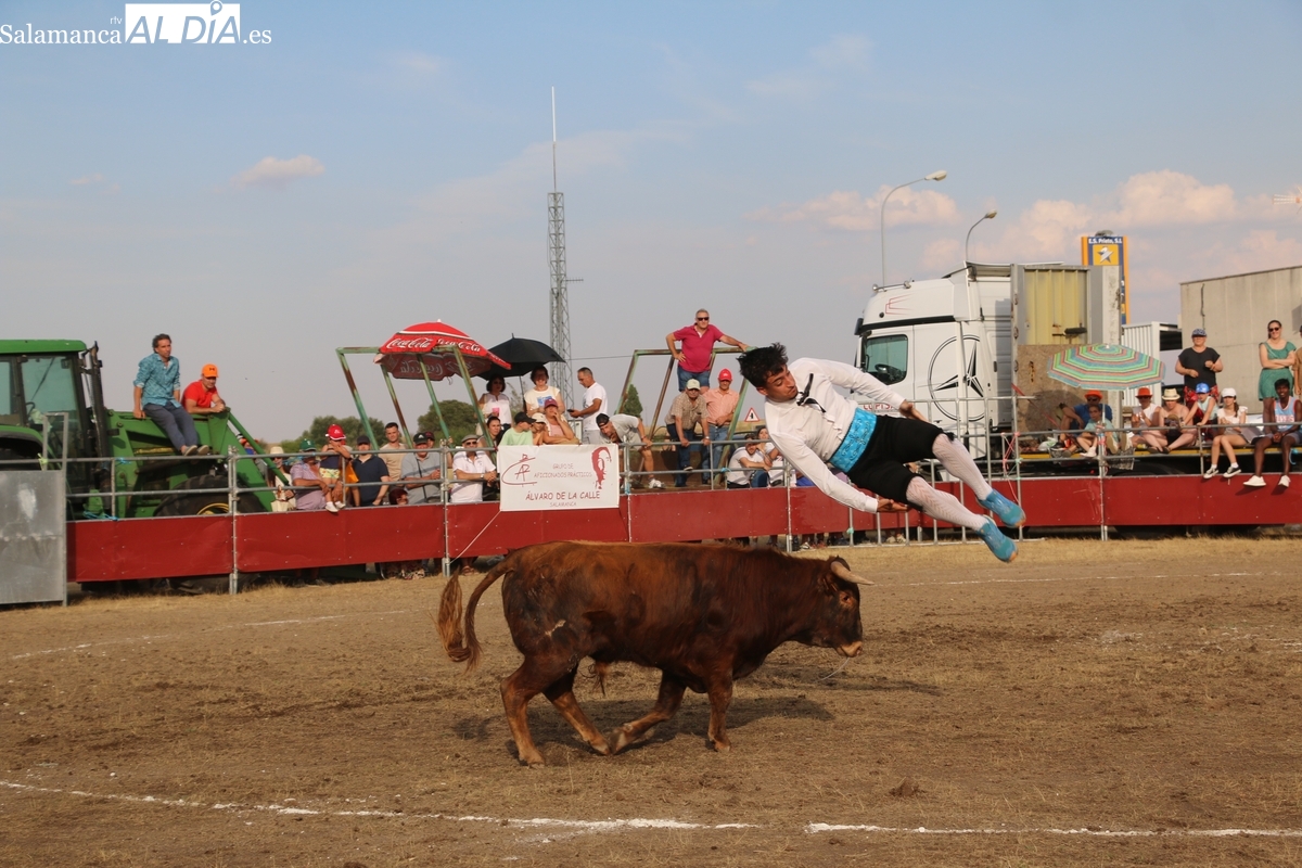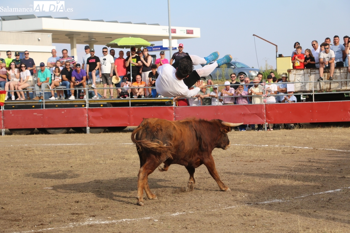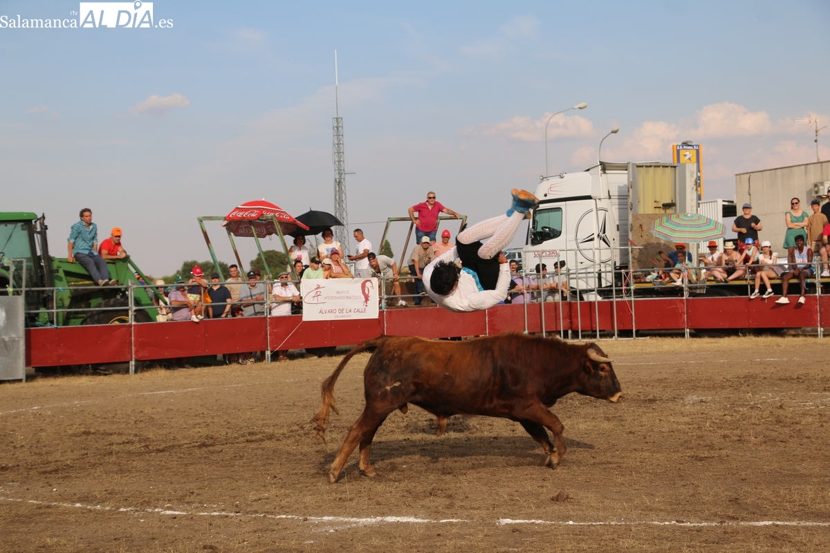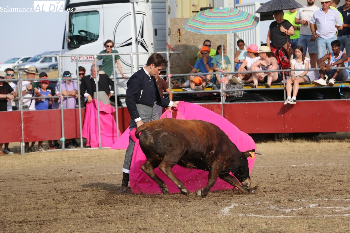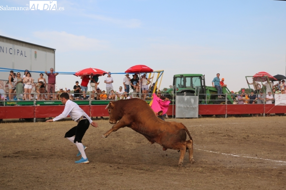 Después de una mañana dedicada a los más pequeños con Encierros Infantiles Huertos y su ganadería de carretones, la tarde daría paso al VII Tentadero de Aficionados Prácticos y Exhibición de Recortadores, festejo con ganado de Ignacio López Chaves, y en el que estaban anunciados los aficionados prácticos: Eladio Jiménez ‘Layi’, de la Escuela de Ciudad Rodrigo; Alberto Campos, de la Escuela Álvaro de la Calle; Pablo Mangas, de la Escuela Damián Castaño; y Gonzalo Rivilla, de la Escuela Salvador Ruano. También habría espacio para los aficionados a los recortes, apartado en el intervendrían los recortadores: Víctor Revesado, de Yecla de Yeltes; y Unai Aires y Álvaro ‘Chispas’, ambos de Lumbrales, y este último en sustitución de Óscar Ramos, también de Lumbrales; y de Javi Martín, de Vitigudino, ambos lesionados y que no pudieron actuar. En cualquier caso, los tres intervinientes dieron un recital de recortes, además de los saltos de Víctor Revesado para rematar la 'faena'. Finalizada su actuación, muy aplaudida por el público, con presencia importante de lumbraleses, el festejo daría paso a una capea abierta a todos los aficionados.
