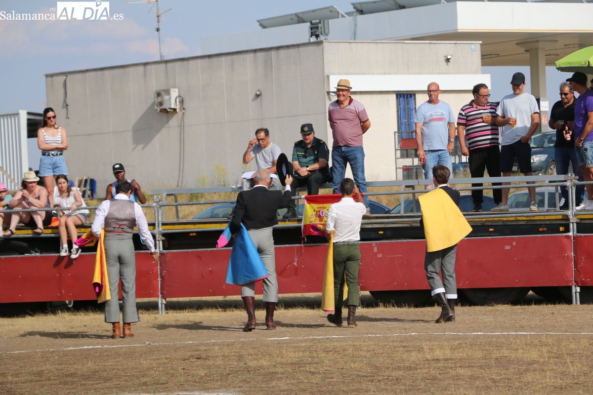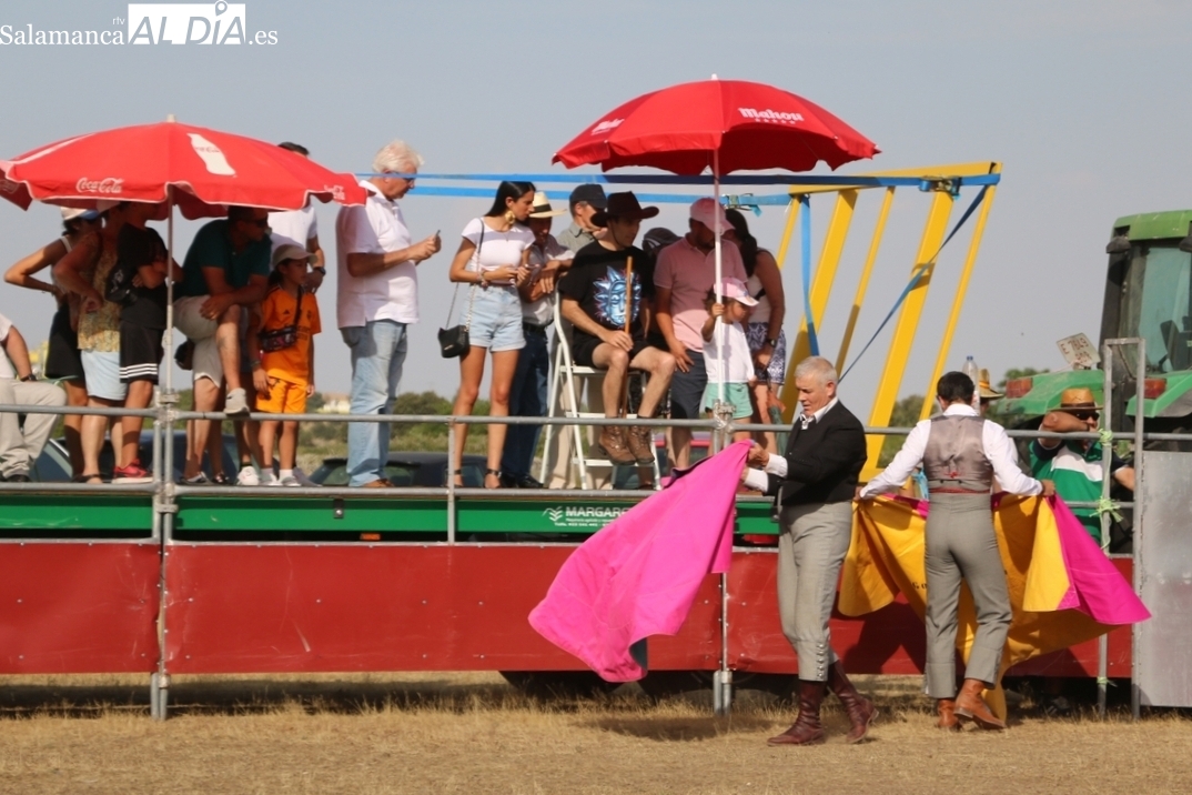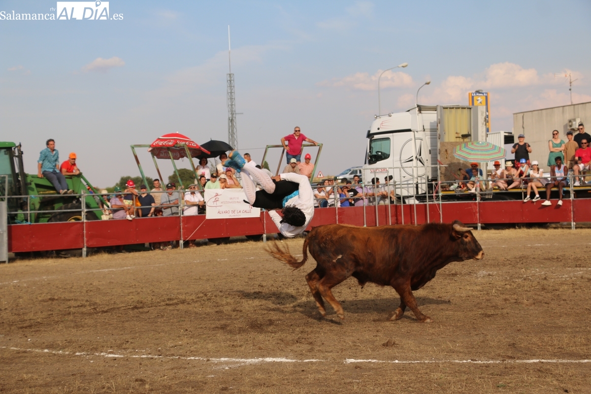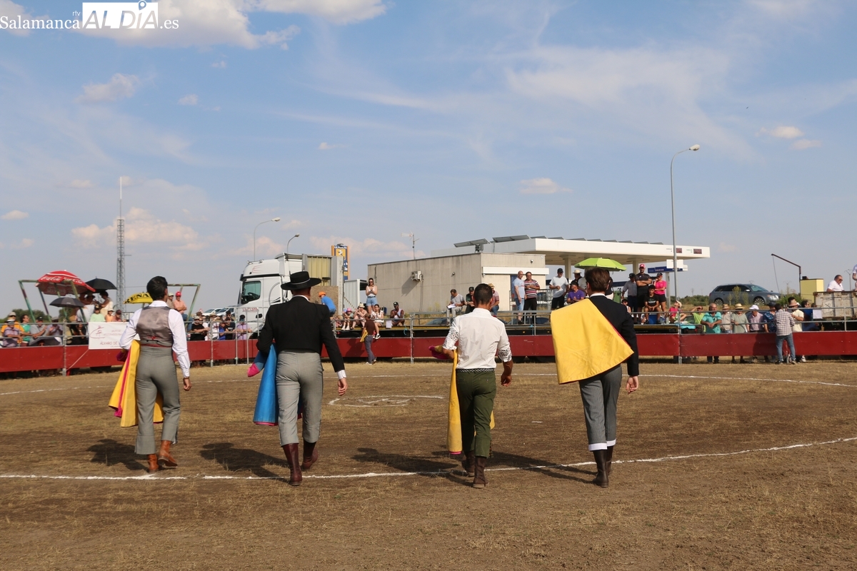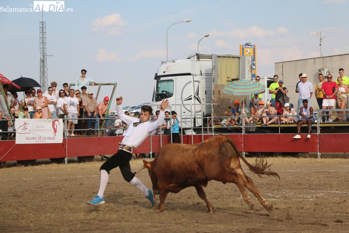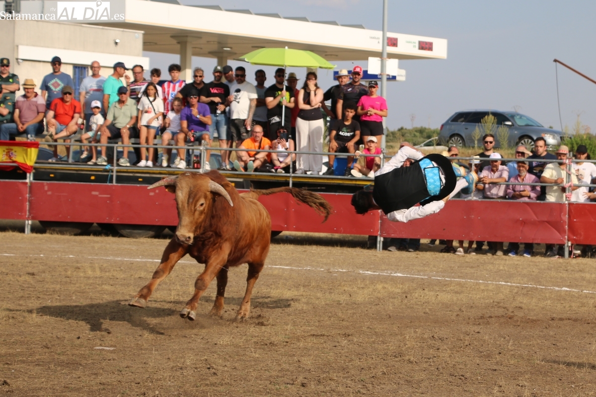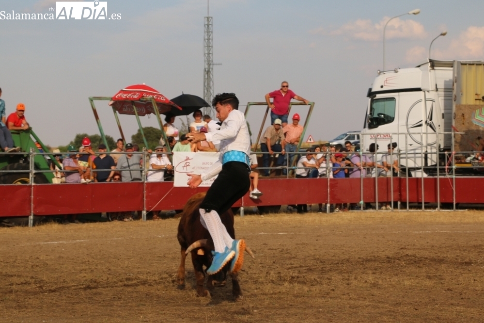 Después de una mañana dedicada a los más pequeños con Encierros Infantiles Huertos y su ganadería de carretones, la tarde daría paso al VII Tentadero de Aficionados Prácticos y Exhibición de Recortadores, festejo con ganado de Ignacio López Chaves, y en el que estaban anunciados los aficionados prácticos: Eladio Jiménez ‘Layi’, de la Escuela de Ciudad Rodrigo; Alberto Campos, de la Escuela Álvaro de la Calle; Pablo Mangas, de la Escuela Damián Castaño; y Gonzalo Rivilla, de la Escuela Salvador Ruano. También habría espacio para los aficionados a los recortes, apartado en el intervendrían los recortadores: Víctor Revesado, de Yecla de Yeltes; y Unai Aires y Álvaro ‘Chispas’, ambos de Lumbrales, y este último en sustitución de Óscar Ramos, también de Lumbrales; y de Javi Martín, de Vitigudino, ambos lesionados y que no pudieron actuar. En cualquier caso, los tres intervinientes dieron un recital de recortes, además de los saltos de Víctor Revesado para rematar la 'faena'. Finalizada su actuación, muy aplaudida por el público, con presencia importante de lumbraleses, el festejo daría paso a una capea abierta a todos los aficionados.