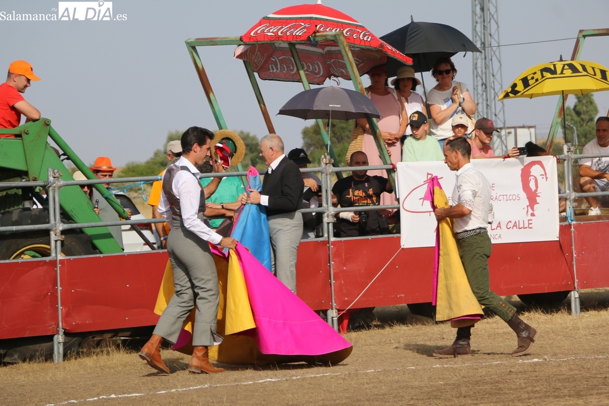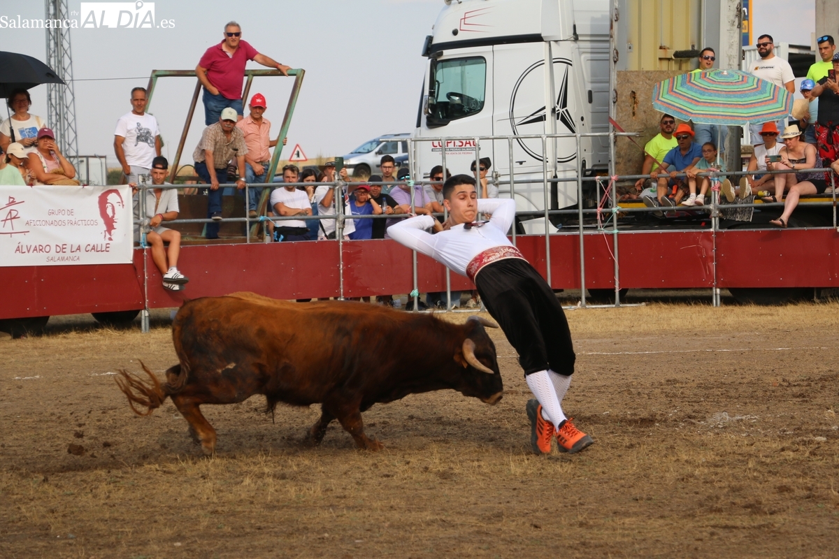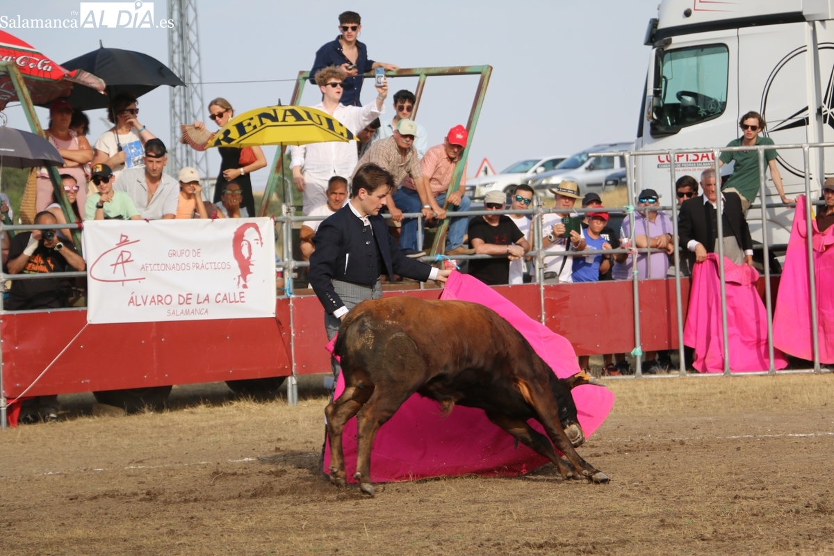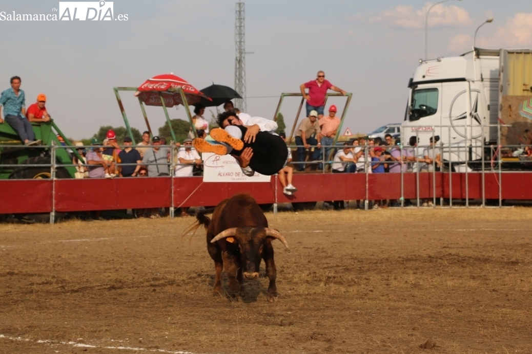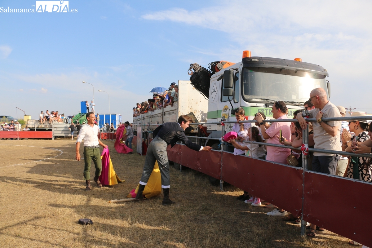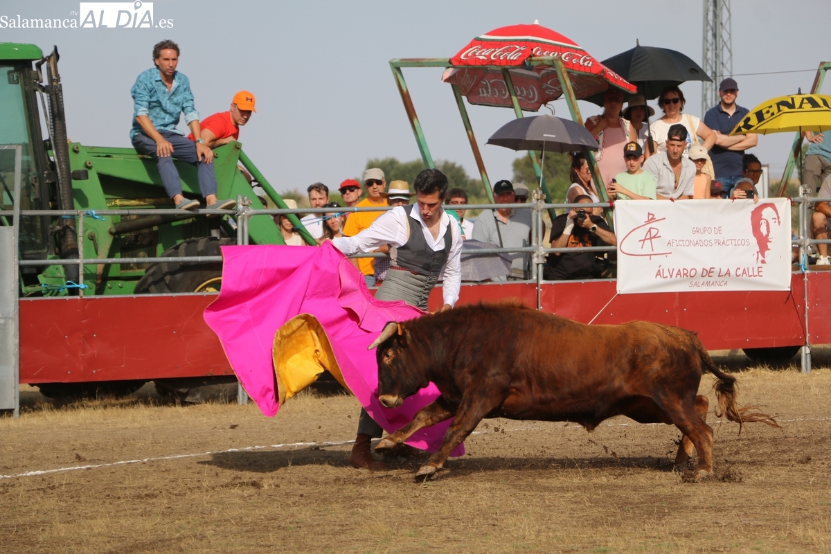 Después de una mañana dedicada a los más pequeños con Encierros Infantiles Huertos y su ganadería de carretones, la tarde daría paso al VII Tentadero de Aficionados Prácticos y Exhibición de Recortadores, festejo con ganado de Ignacio López Chaves, y en el que estaban anunciados los aficionados prácticos: Eladio Jiménez ‘Layi’, de la Escuela de Ciudad Rodrigo; Alberto Campos, de la Escuela Álvaro de la Calle; Pablo Mangas, de la Escuela Damián Castaño; y Gonzalo Rivilla, de la Escuela Salvador Ruano. También habría espacio para los aficionados a los recortes, apartado en el intervendrían los recortadores: Víctor Revesado, de Yecla de Yeltes; y Unai Aires y Álvaro ‘Chispas’, ambos de Lumbrales, y este último en sustitución de Óscar Ramos, también de Lumbrales; y de Javi Martín, de Vitigudino, ambos lesionados y que no pudieron actuar. En cualquier caso, los tres intervinientes dieron un recital de recortes, además de los saltos de Víctor Revesado para rematar la 'faena'. Finalizada su actuación, muy aplaudida por el público, con presencia importante de lumbraleses, el festejo daría paso a una capea abierta a todos los aficionados.