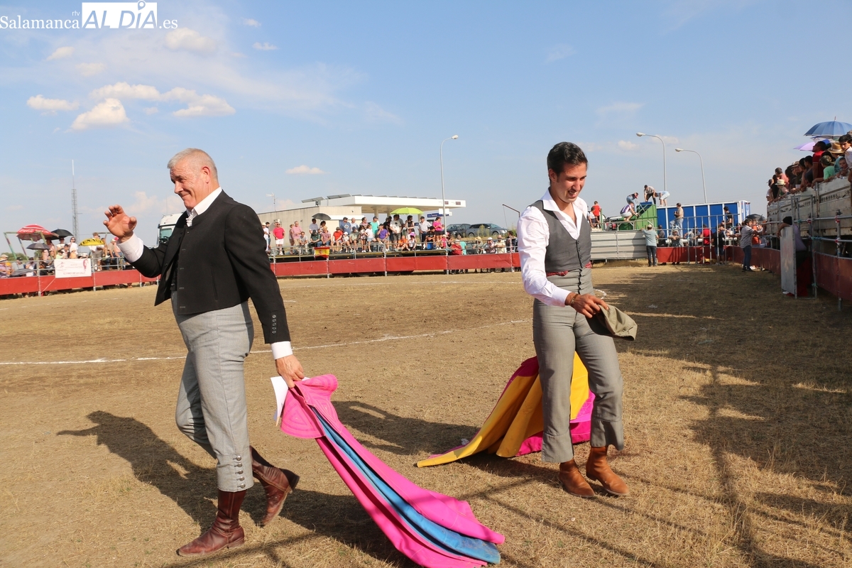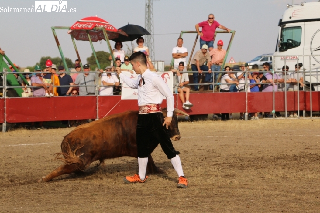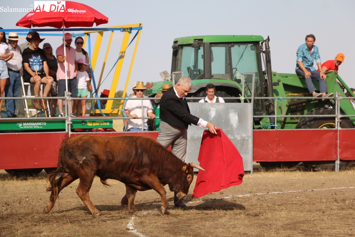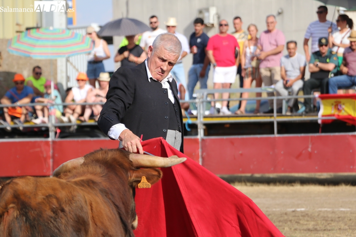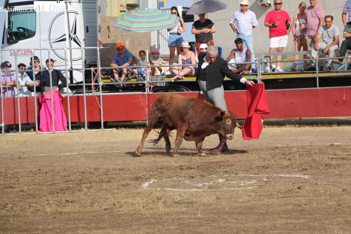 A pesar del sofocante calor de la tarde, cientos de personas asistieron este sábado a un entretenido y vistoso festejo taurino en Villar de Peralonso, con motivo de las fiestas de San Pedro, celebraciones que discurren a lo largo de este fin de semana con una gran animación.