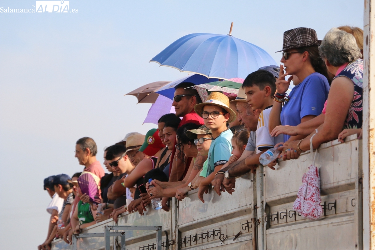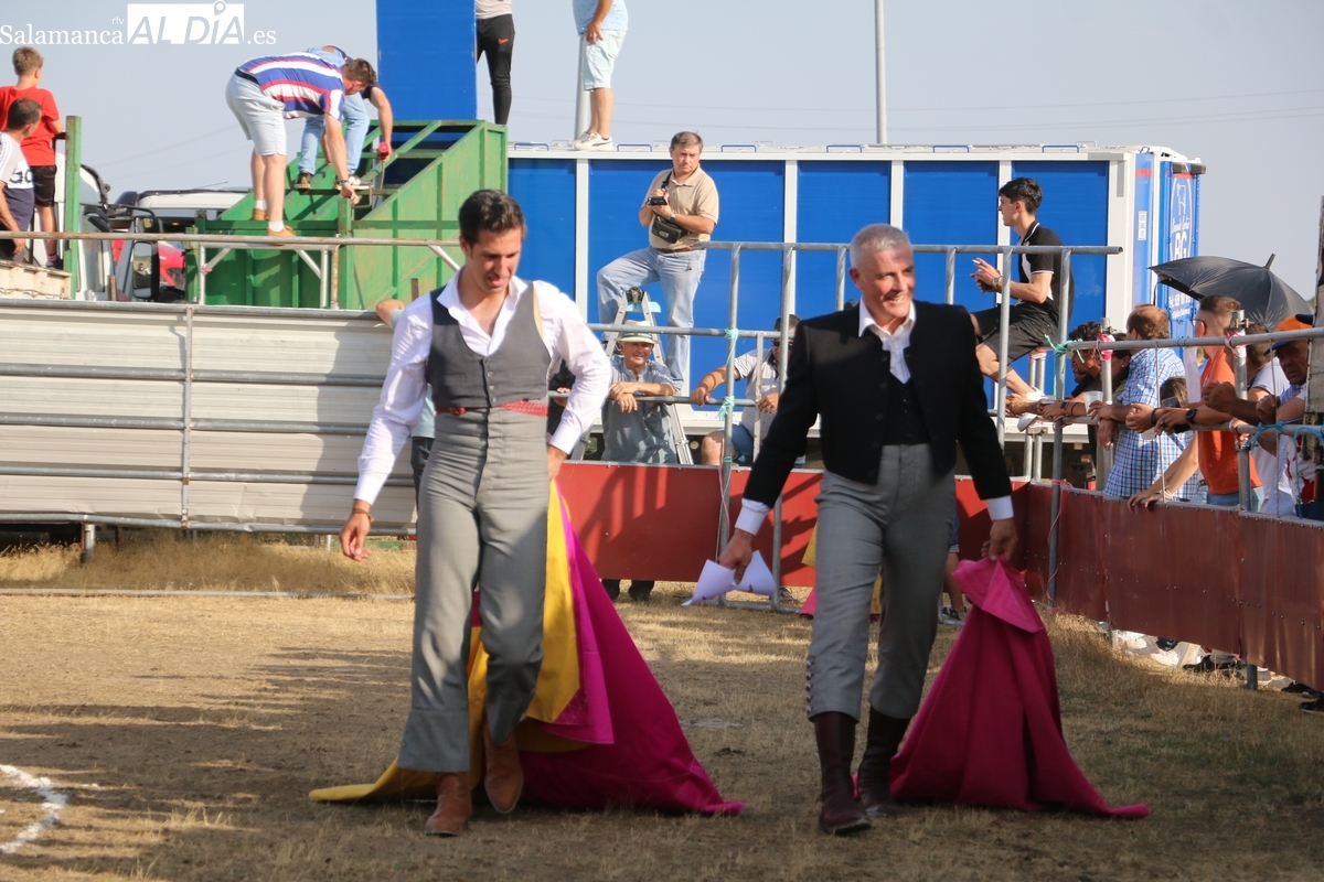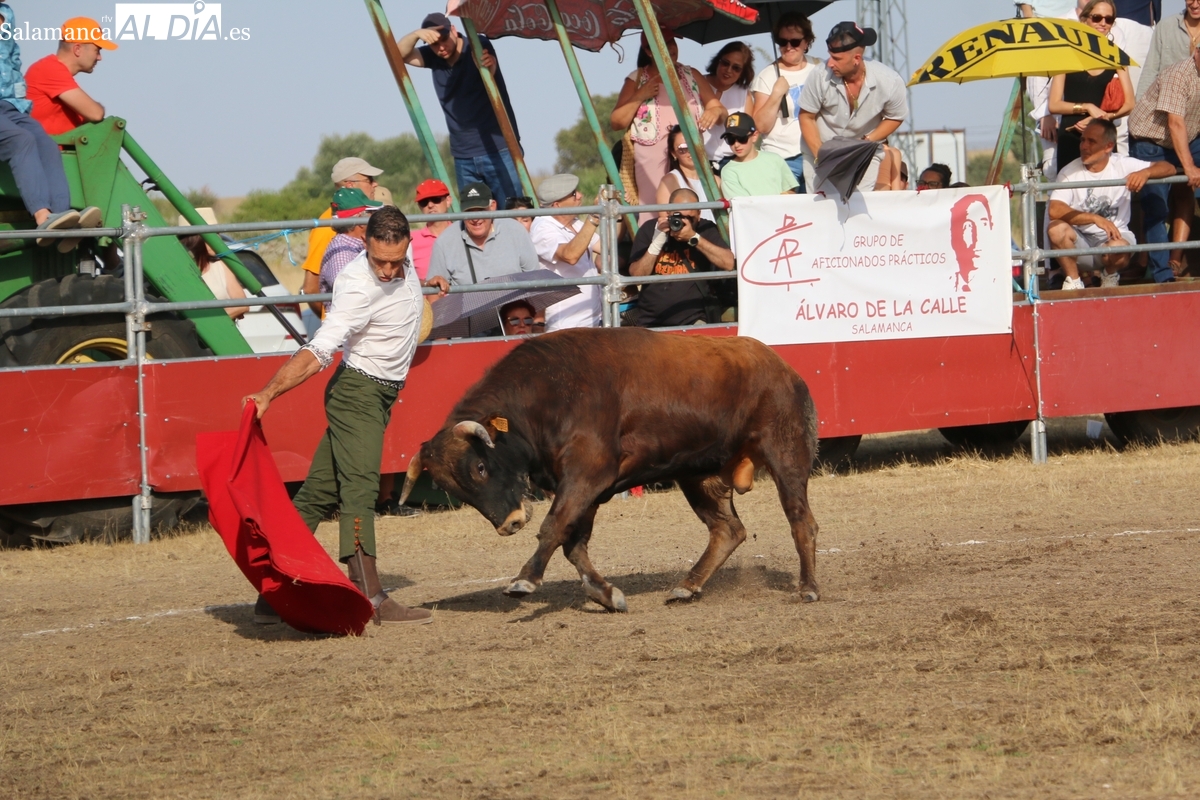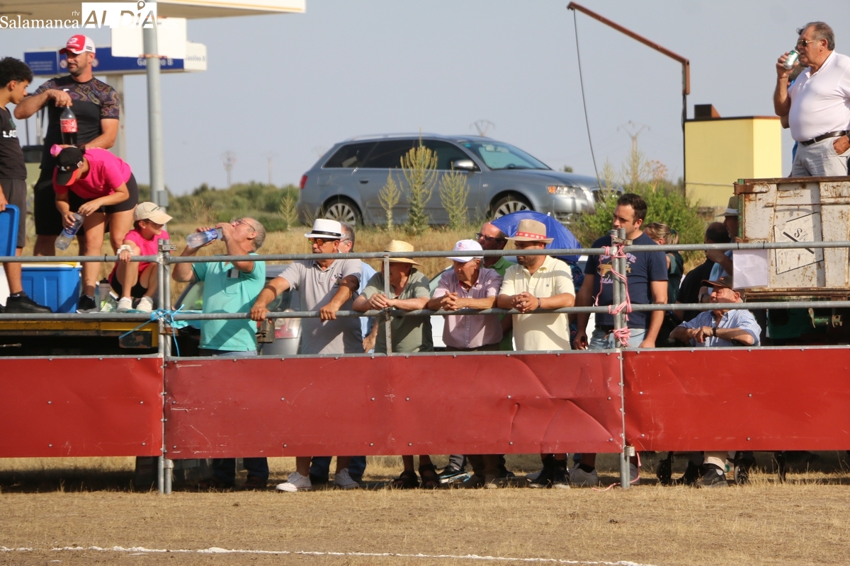A pesar del sofocante calor de la tarde, cientos de personas asistieron este sábado a un entretenido y vistoso festejo taurino en Villar de Peralonso, con motivo de las fiestas de San Pedro, celebraciones que discurren a lo largo de este fin de semana con una gran animación.
