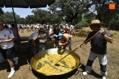 El encuentro tuvo lugar este sábado en la finca de ‘Las Encinas’, un amplio paraje municipal que ofrece la sombra generosa de su arbolado como refugio natural frente al intenso sol de junio. Allí, más de 400 personas compartieron mesa y mantel, degustando una paella multitudinaria seguida de una caldereta elaborada con carne de una de las reses lidiadas durante las celebraciones taurinas.