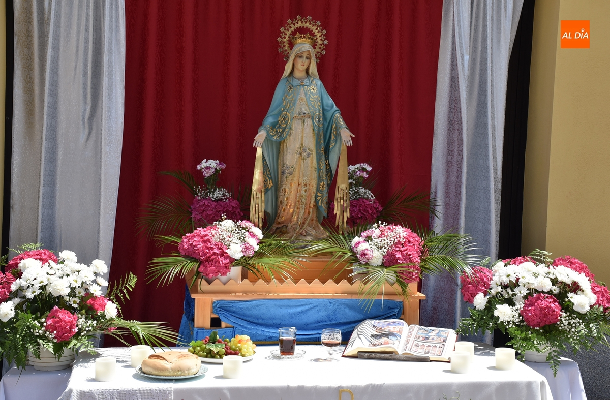 La Virgen Milagrosa y una alfombra florida sobresalen en los altares de San Andrés