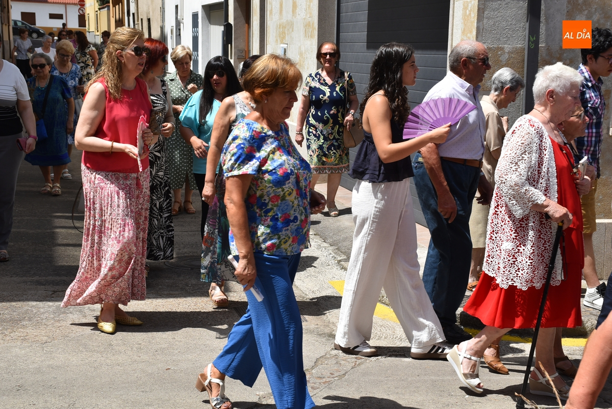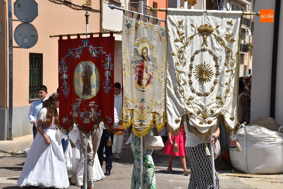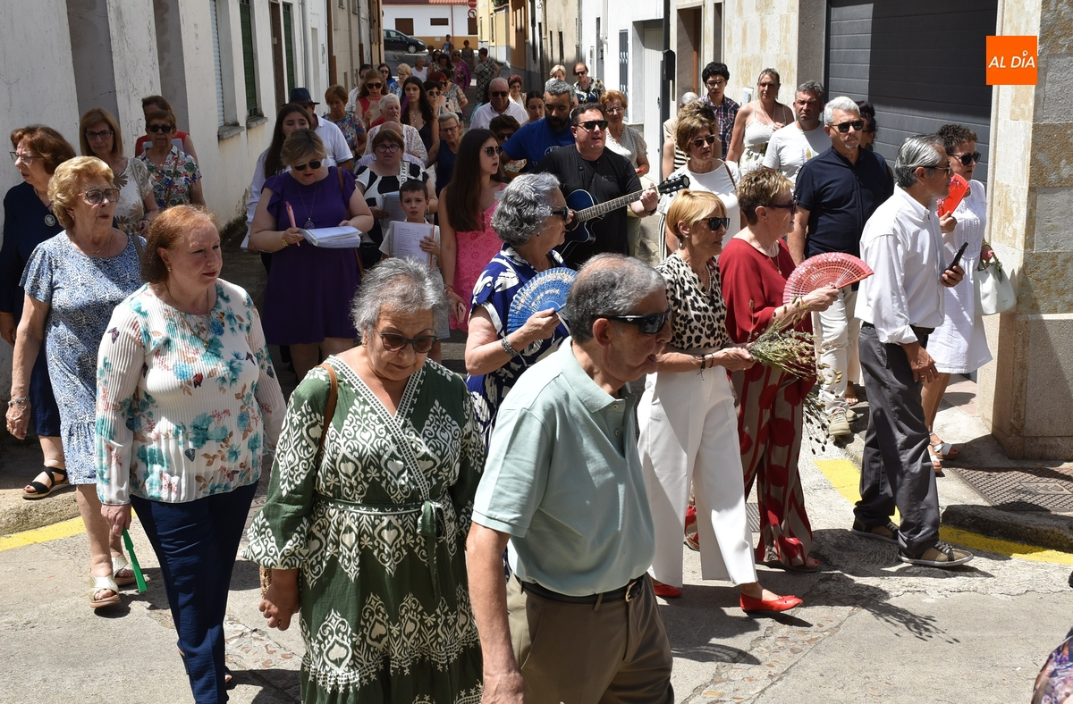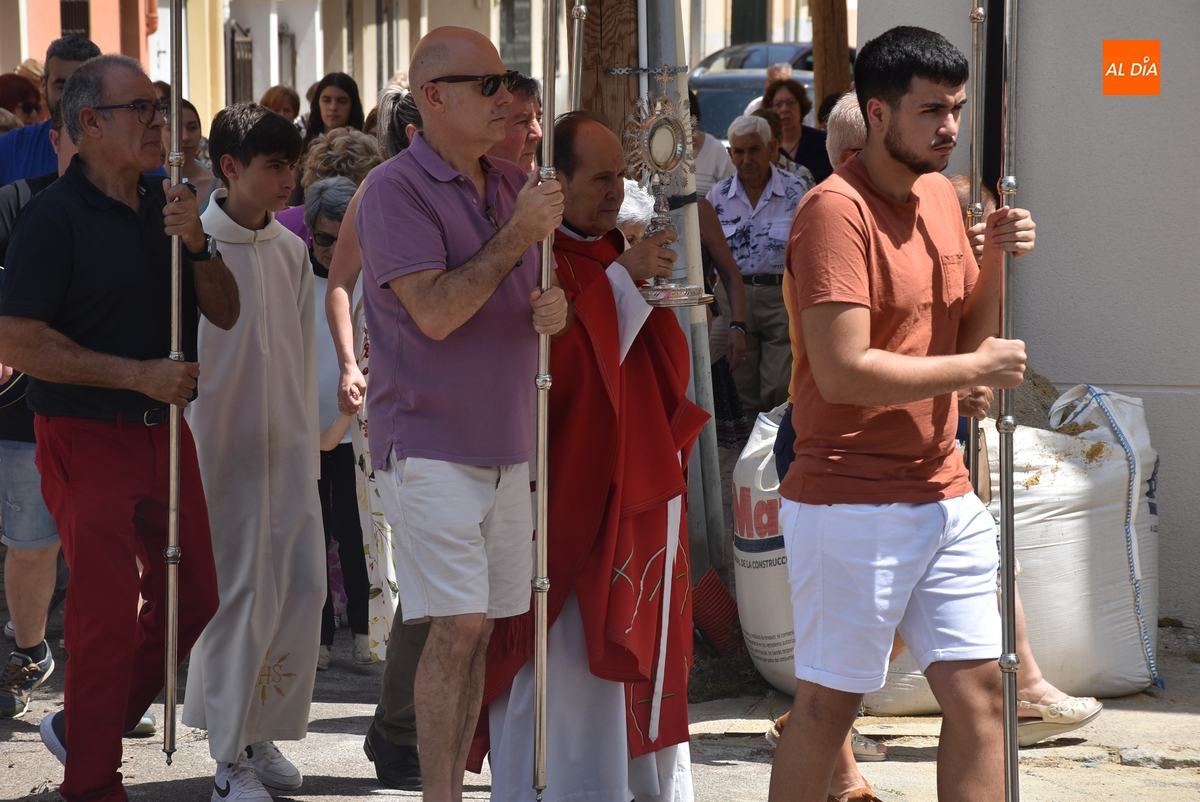 Esta procesión tuvo lugar a la conclusión de la eucaristía que ofició al mediodía en el templo el párroco Tomás Muñoz Porras, contándose con la animación musical del Coro de la Parroquia, que también se encargó de acompañar con sus cánticos el citado desfile (abierto por varios estandartes), durante el cual el Santísimo visitó tres altares, todos ellos bastante cuidados, como se puede ver en las imágenes.