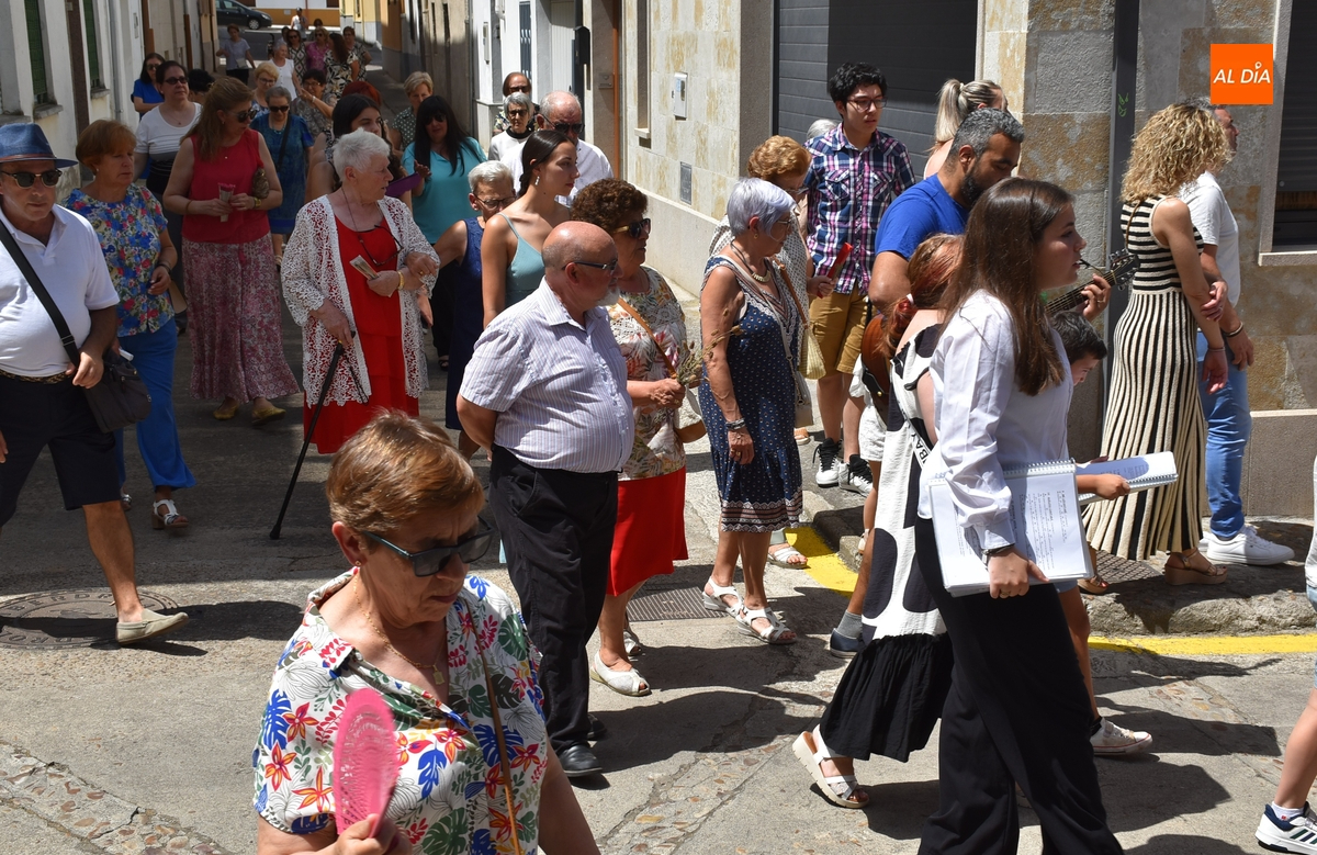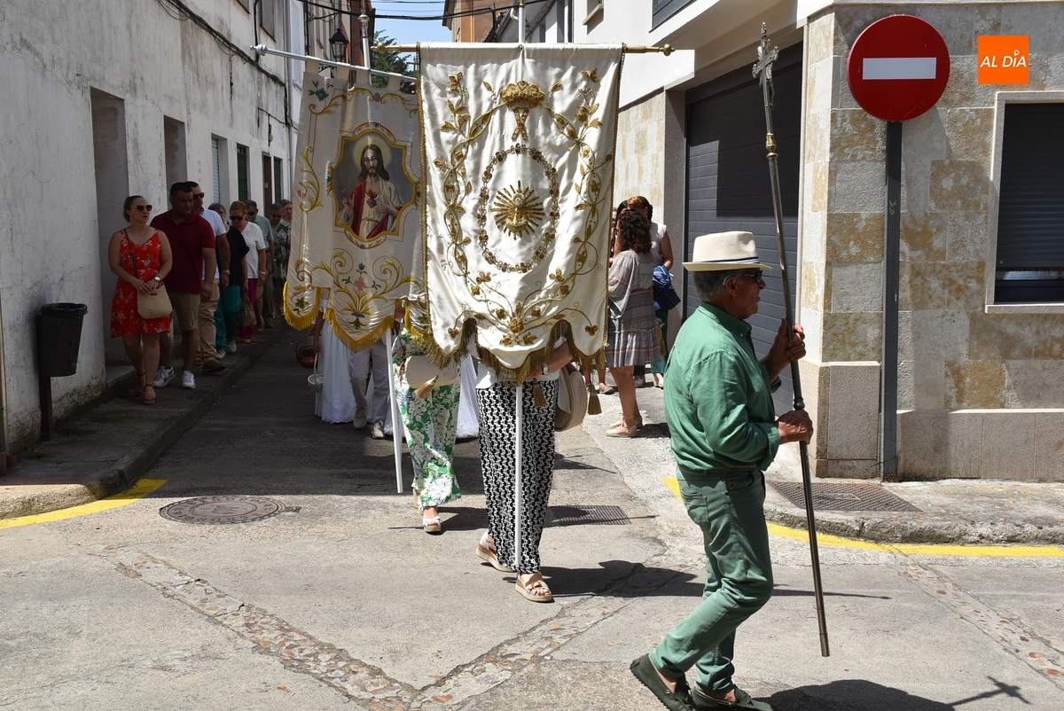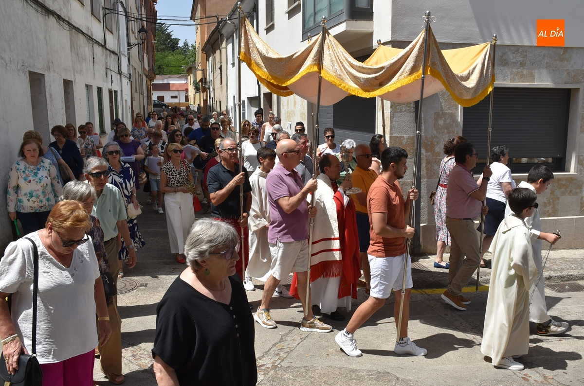 La Parroquia de San Andrés de Ciudad Rodrigo vivió en la mañana del domingo la procesión más solemne de todas las que lleva a cabo a lo largo del año, la del Santísimo Sacramento, que recorrió las calles dentro de la custodia que procesionó bajo palio para celebrar la denominada Octava de Corpus, que siempre redondea la conmemoración de la festividad del Corpus Christi en la ciudad.