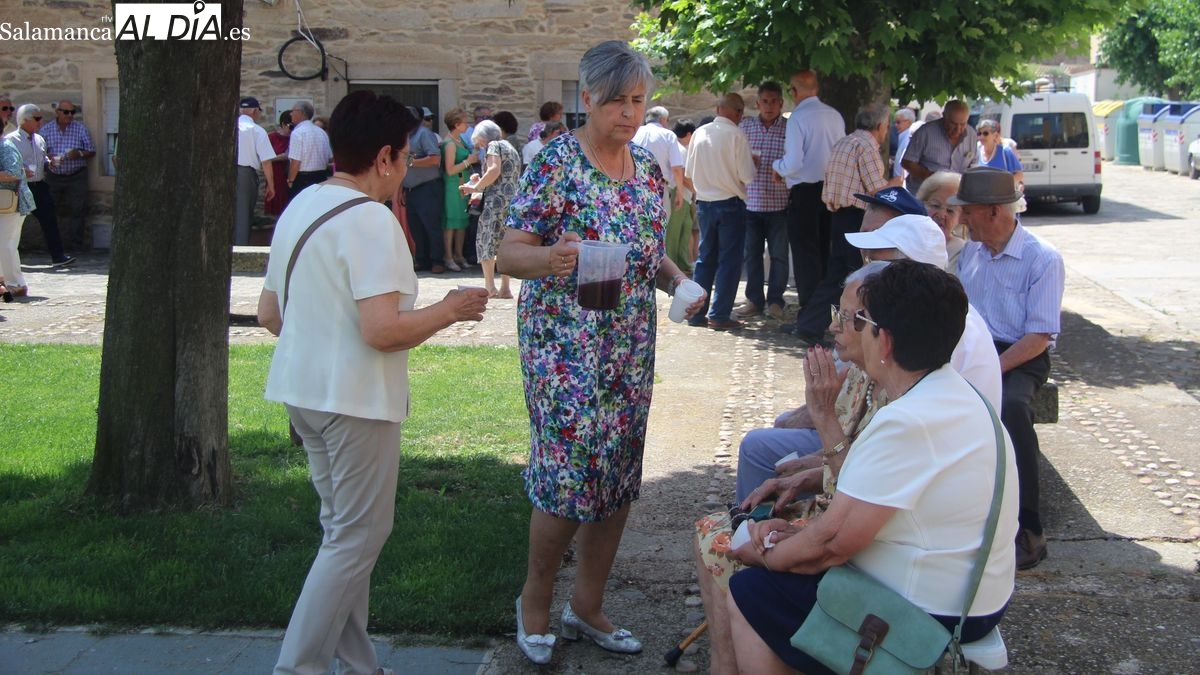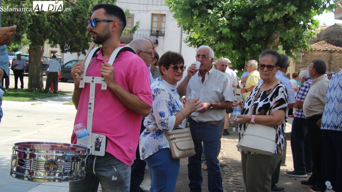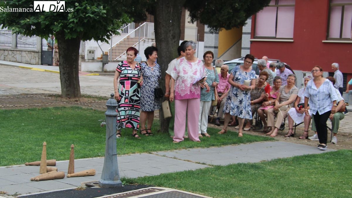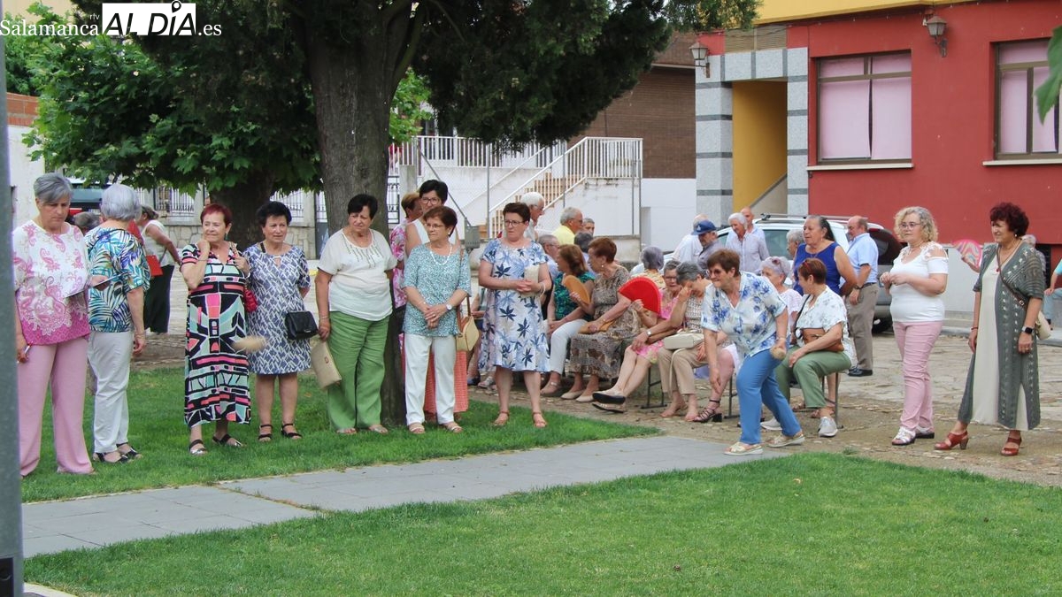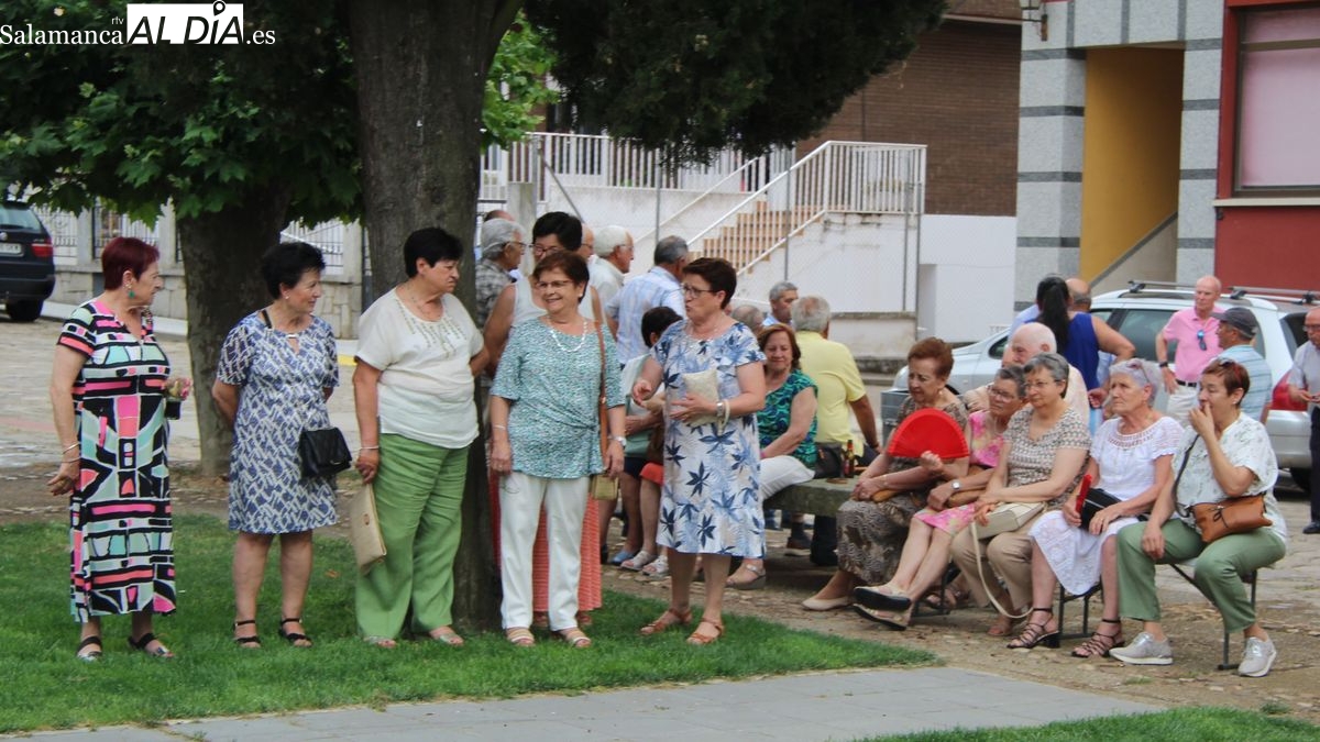 Los cohetes anunciaban el inicio de la fiesta a las 11,30 horas, momento en que los mayores empezaron a reunirse en el parque próximo al hogar del jubilado. Desde el parque, y acompañados de una charanga, iniciaron el paseo hasta la iglesia parroquial para asistir a la misa dominical, hoy en honor del patrón de esta asociación, y que fue oficiada por el párroco Andrés García.