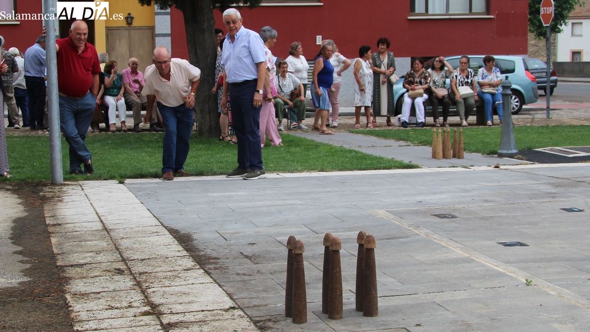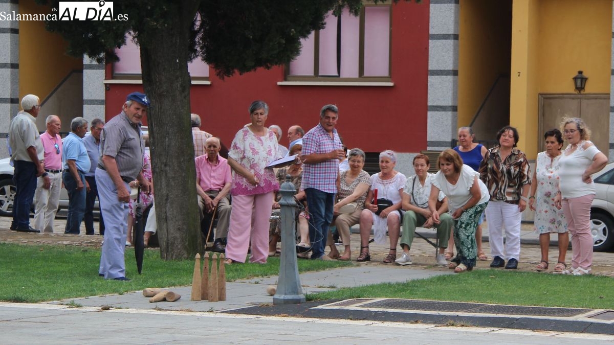 Después de la comida, y de la tormenta que cayó pasadas las 5 horas de la tarde, la fiesta se trasladó de nuevo al parque, que se convirtió en escenario de los juegos tradicionales de los bolos y la rana, una de las actividades más esperadas de la jornada festiva.