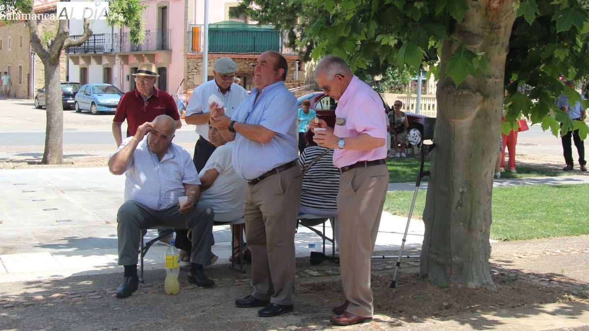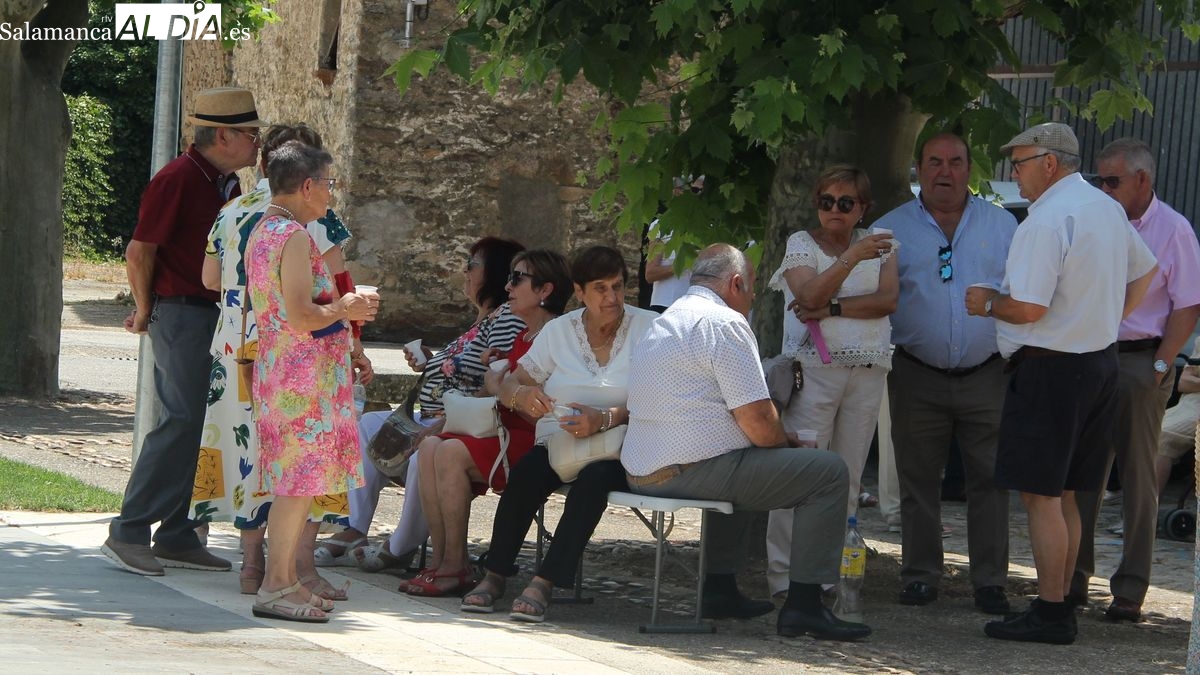 Finalizada la eucaristía, los jubilados se reunieron de nuevo en el parque para, bajo un intenso calor, disfrutar de un convite con dulces y sangría y de la música de la charanga hasta la hora de la comida.
