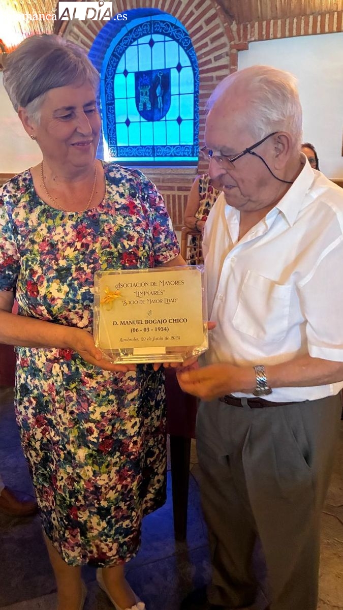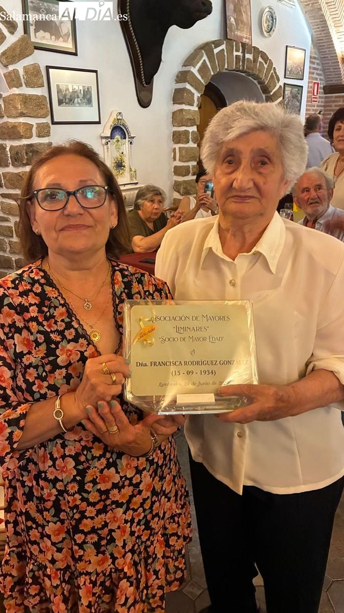 María Sánchez Comerón, Angel Rodríguez García, Manuel Bogajo Chico, Francisca Rodríguez González, Faustino González Miguel, Elisa García Simal y Agustín Calderón Sánchez. Carlos Pedraz, alcalde de Lumbrales y Rosa del Pozo, concejala del consistorio, y dos mujeres de la directiva de la asociación Liminares entregaron las placas a los homenajeados asistentes a la comida. Los demás recibirán su respectiva placa en sus hogares.