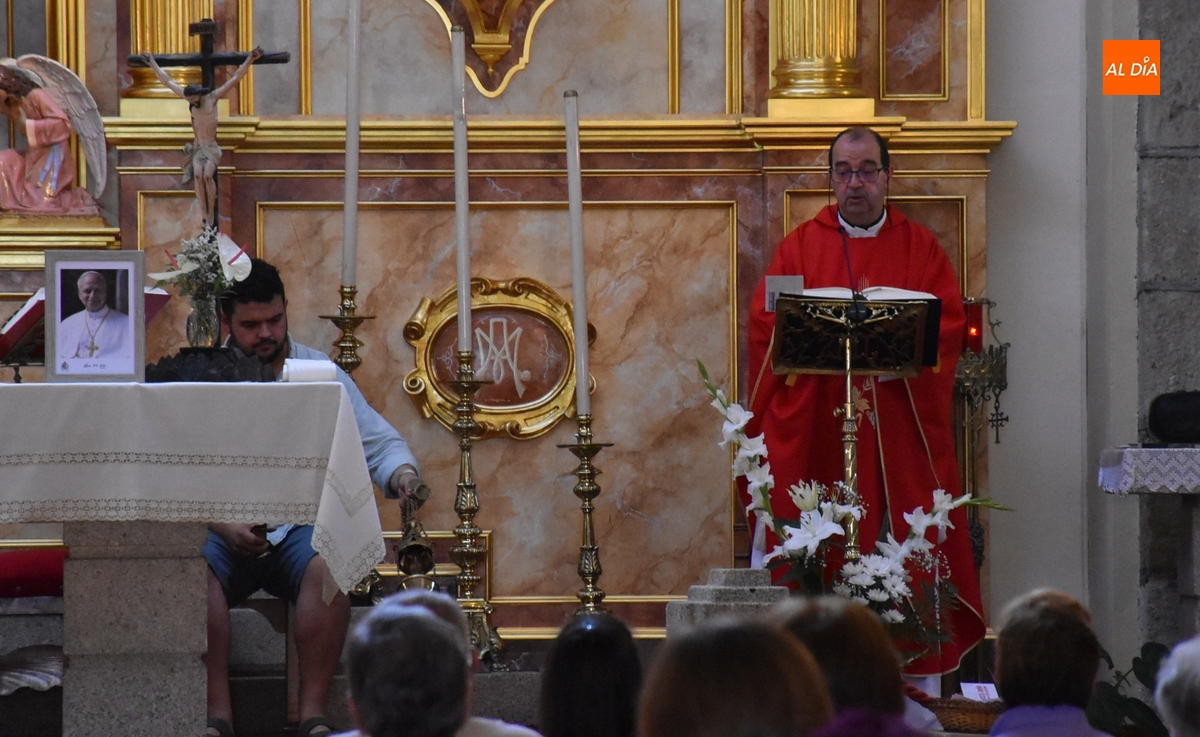 La secuencia de celebraciones de la denominada Octava de Corpus en las parroquias situadas fuera del recinto amurallado de Ciudad Rodrigo comenzó este año cronológicamente hablando en la Parroquia de San Cristóbal, donde en conjunto la conmemoración fue diferente a lo habitual para posibilitar que el párroco, Rafael Caño, llegase a tiempo a oficiar misa a las 13.00 horas en Sancti-Spíritus, donde también ejerce como párroco.