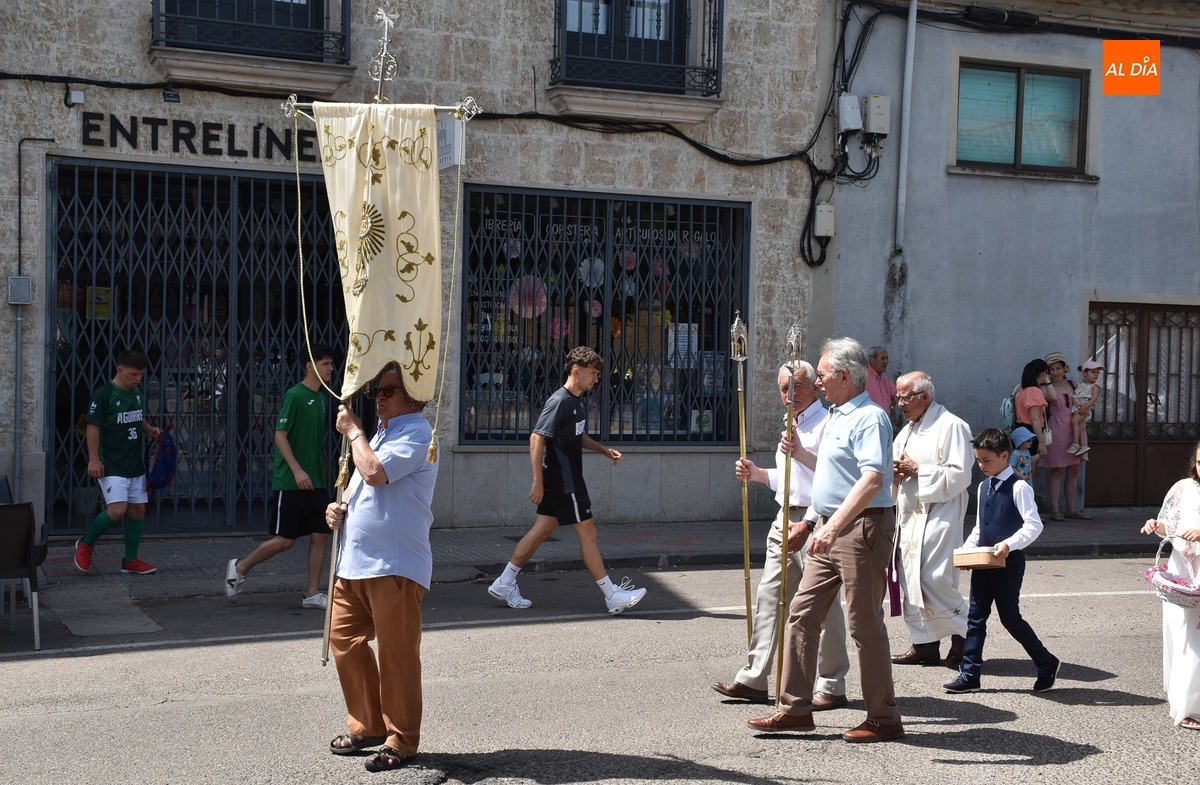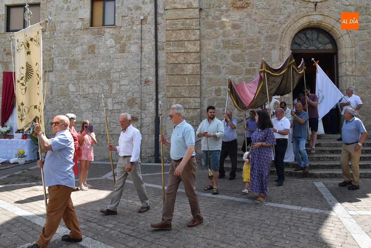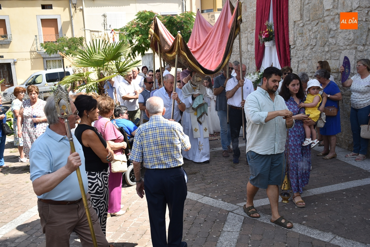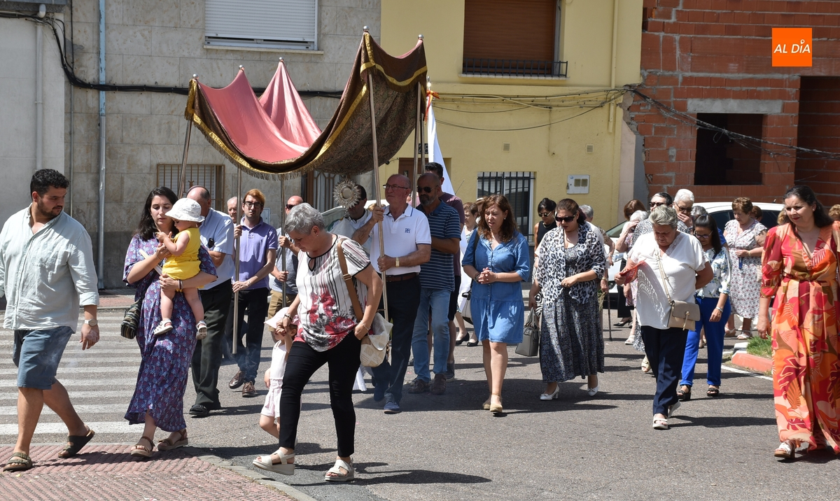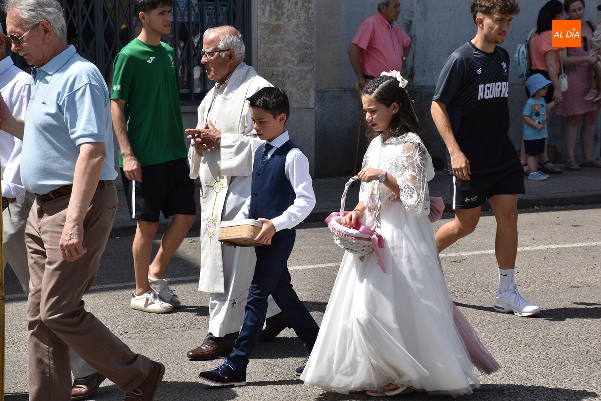 Esta salida del Santísimo a las calles de San Cristóbal estuvo acompañado por dos niños que han tomado la Primera Comunión durante esta primavera, que fueron lanzando pétalos a la custodia, así como por una bandera del grupo de Adoración Nocturna de Ciudad Rodrigo, que se inclinó en cada uno de los altares. De regreso al templo, el Santísimo quedó expuesto para ser adorado por todos aquellos que quisieran hasta las 18.00 horas, momento en que se producirá su reserva tras llevarse a cabo el rezo de Vísperas.