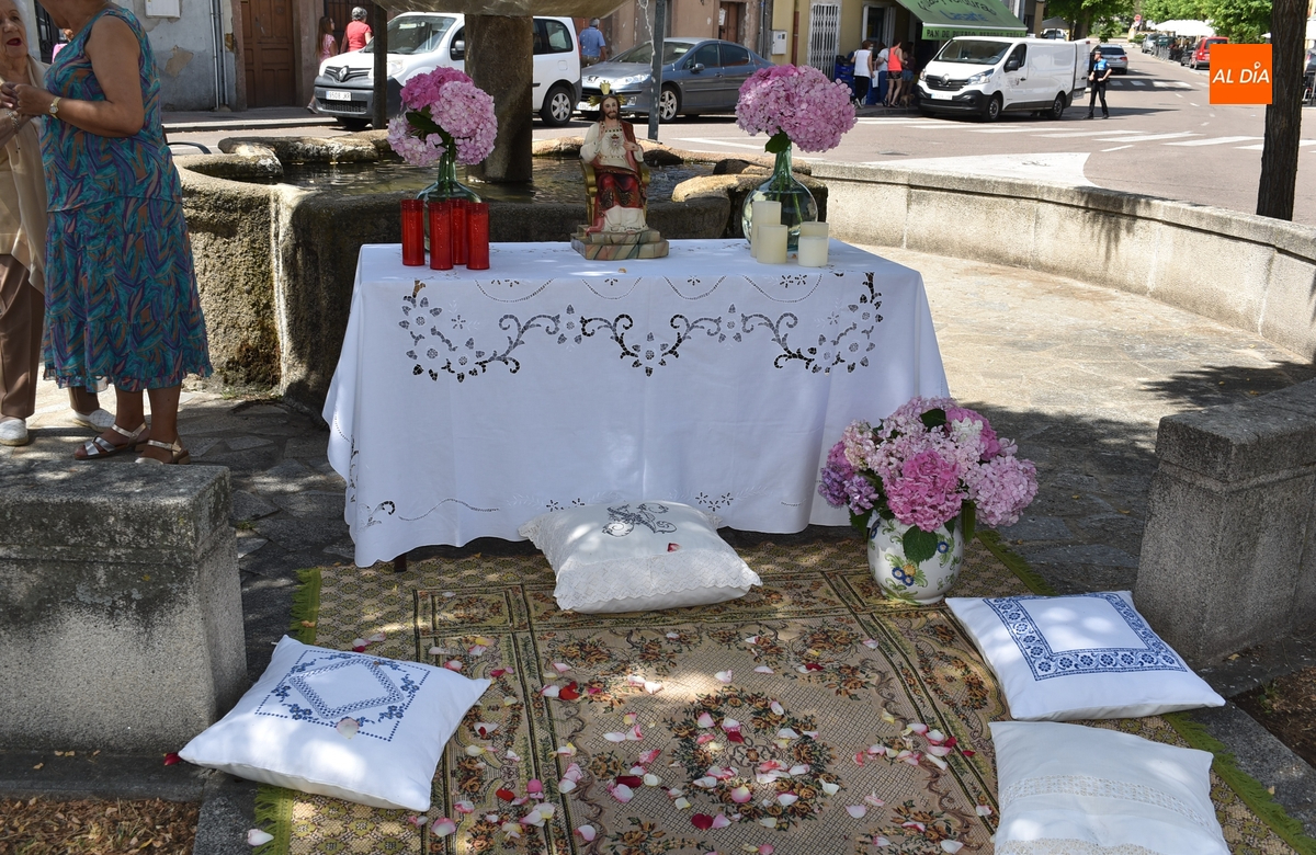 Hubo dos niños de Primera Comunión y dos altares, uno de ellos en plena rotonda de la fuente de San Cristóbal