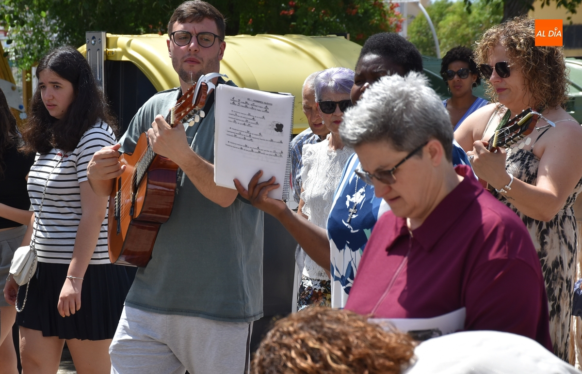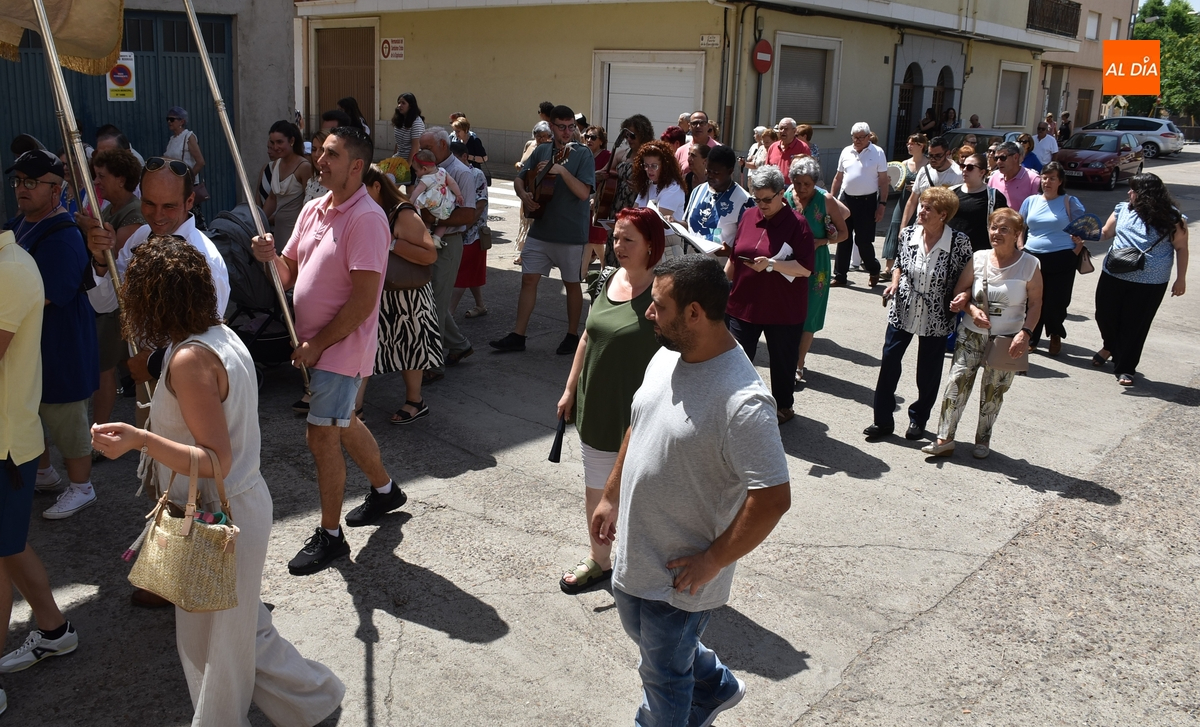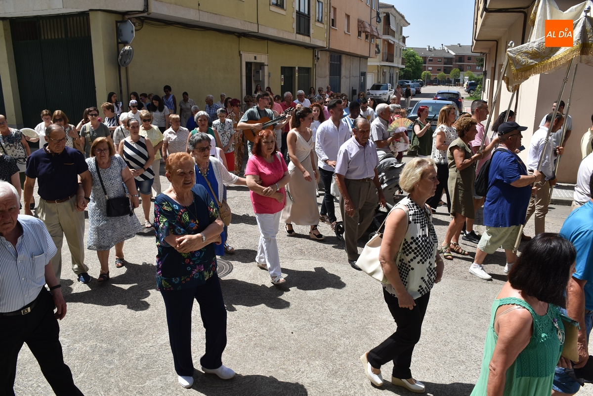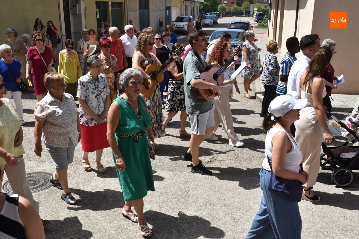Tras esa primera parada, la procesión recorrió la Avenida de Los Cañitos hasta la altura de la Parroquia, deteniéndose a la mitad de la vía para visitar otro altar, donde fue bendecido un bebé (también se le había bendecido más rápidamente en el primer altar). De ahí se continuó hacia la Parroquia, a cuyas puertas estaba situado el tercer altar de la mañana en este barrio. Este recorrido estuvo animado musicalmente por el Coro de la Parroquia, con guitarras incluidas.