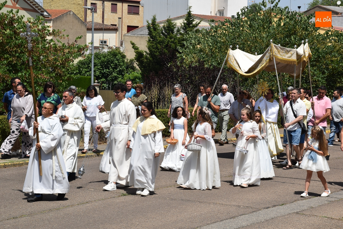 Con la pista deportiva anexa acogiendo también a unos chavales jugando al fútbol sala dentro de la gran fiesta de este deporte que está viviendo Ciudad Rodrigo este último fin de semana de junio, la Parroquia de El Salvador conmemoró durante la mañana del domingo la Octava de Corpus, una semana después de que tuviese lugar la celebración del Corpus Cristi en el centro histórico mirobrigense.