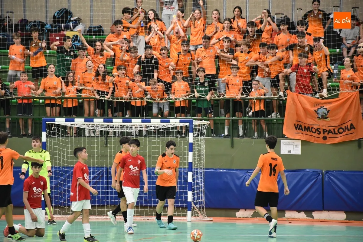 El CDR La Paloma ha hecho también doblete, ya que justo antes de la final Infantil ganaron (con el mismo ambiente festivo en la grada) la final Cadete, en este caso al Deporcoslada (los dos equipos del III Columnas de esta categoría cayeron en semifinales). El CDR La Paloma se colocó pronto con un 3-0 a favor, pero el Deporcoslada se metió en el partido desde el punto de doble penalty, al marcar 2 de los 3 de los que dispuso en la 1ª parte (el primero que lanzó lo detuvo el portero).