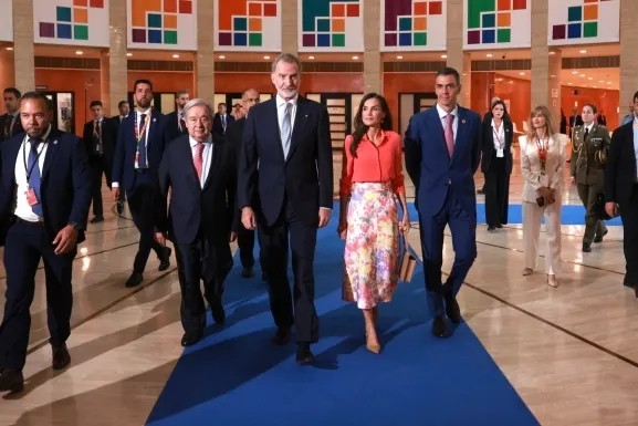 La Reina Letizia ha presidido junto al Rey Felipe VI la inauguración de la IV Conferencia de la ONU en Sevilla, rindiendo homenaje a la ciudad anfitriona.