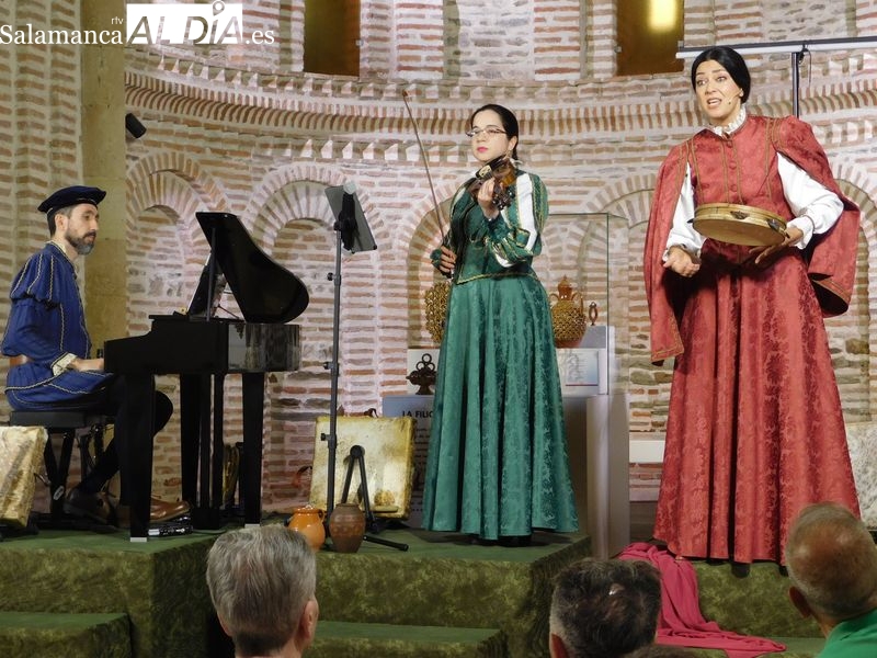 El programa “Provincia Mudéjar”, impulsado por el Área de Cultura de la Diputación de Salamanca y coordinado por el Ayuntamiento albense, se estrenó en la comarca con el espectáculo “Arcos y Ecos”. El lugar elegido no podía ser más acertado: la iglesia más antigua de la localidad, un templo escrito en arcilla que hoy es también el museo de la cerámica.