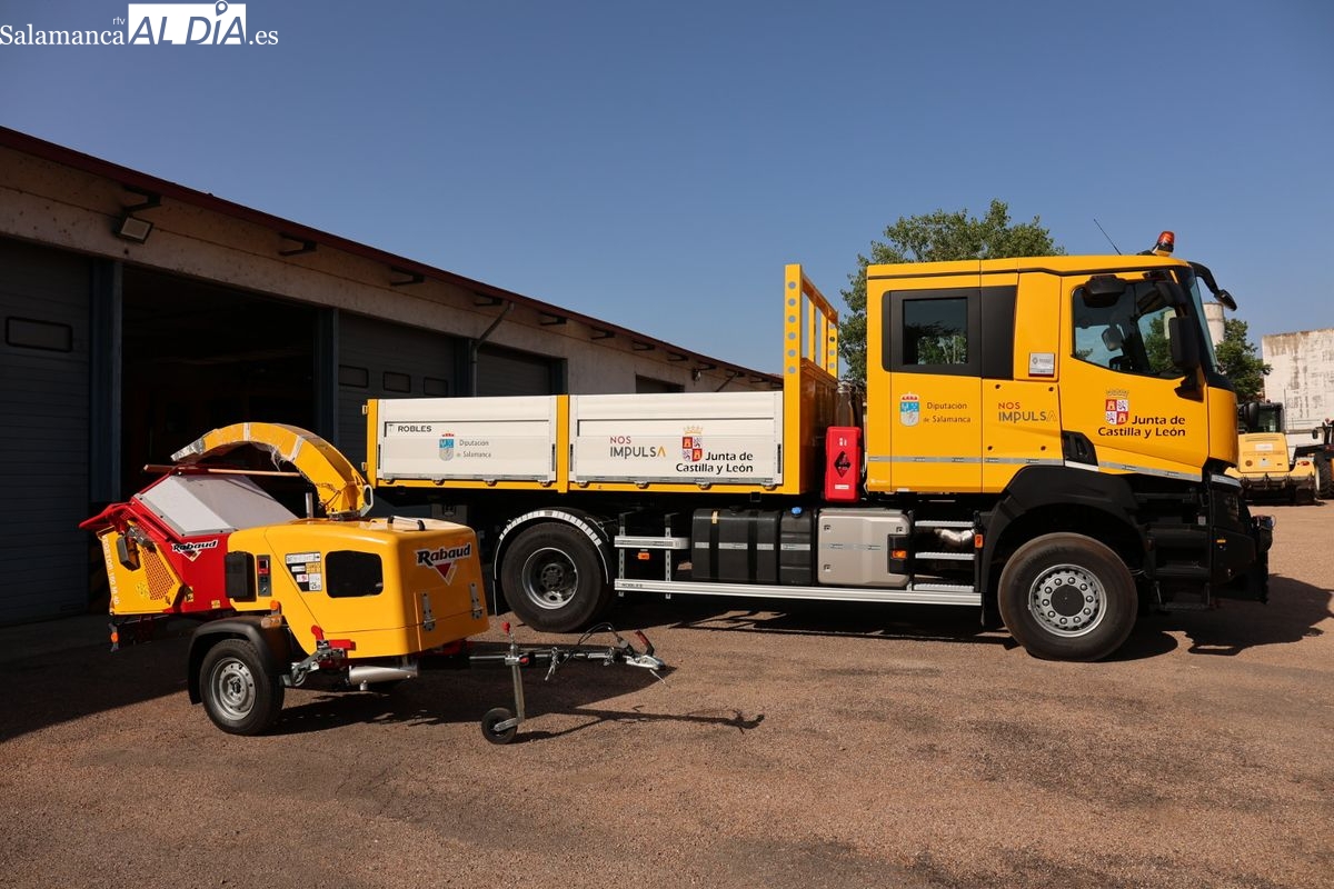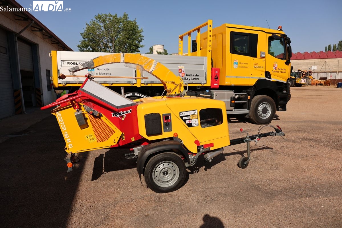Junto a este vehículo, la Diputación ha adquirido también diversa maquinaria destinada al desarrollo de estas labores, tales como motosierras, desbrozadoras, una biotrituradora para restos vegetales, o vestuario y equipamiento para los trabajadores, como han indicado en la mañana de este martes en el Parque de Maquinaria de la Diputación de Salamanca.
