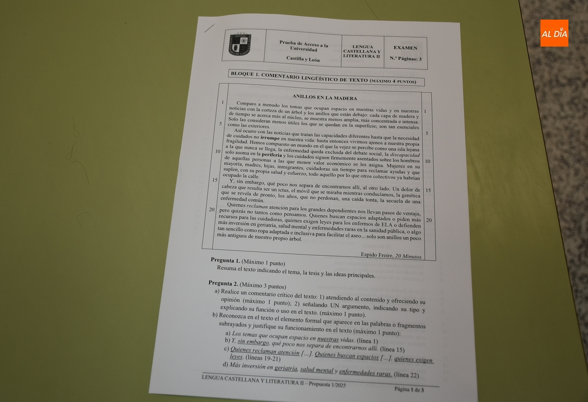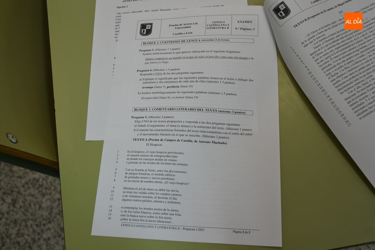En una jornada de nuevo calurosa, “aunque no demasiado” en el aula de examen preparada en el IES Tierra de Ciudad Rodrigo (según apuntaban los coordinadores de la prueba a Ciudad Rodrigo Al Día), los 6 alumnos que afrontan entera la Selectividad (3 del IES Fray Diego Tadeo, 2 del IES Tierra de Ciudad Rodrigo y 1 del IES Tierras del Abadengo de Lumbrales) realizaron en el tramo inicial de la mañana la prueba de Lengua Castellana y Literatura II.