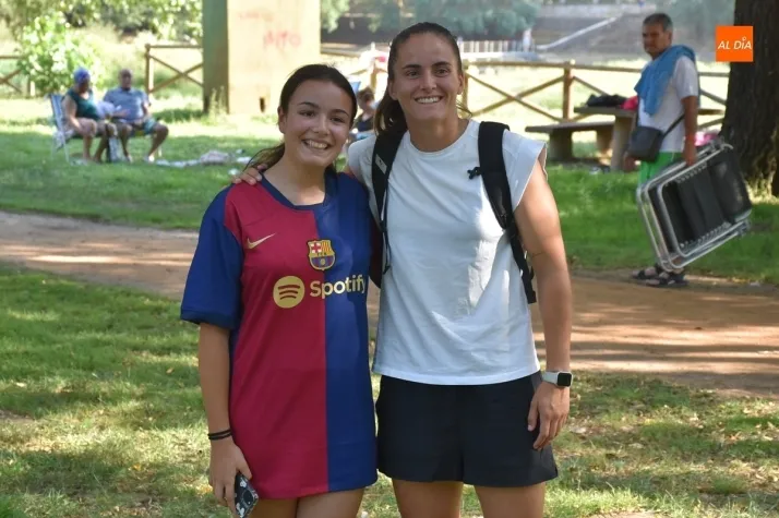 Entre los numerosos mirobrigenses que se acercaron a pasar la tarde del viernes hasta la isla de El Picón de Ciudad Rodrigo (la afluencia va poco a poco creciendo) estuvo la futbolista de élite Carmen Álvarez Sánchez, cuya aparición por el lugar causó especial emoción a una de las jóvenes presentes (que estaba participando en el bingo musical del Ayuntamiento), que no quiso dejar pasar la oportunidad de sacarse una foto para el recuerdo con la jugadora del Eibar de la Liga F.