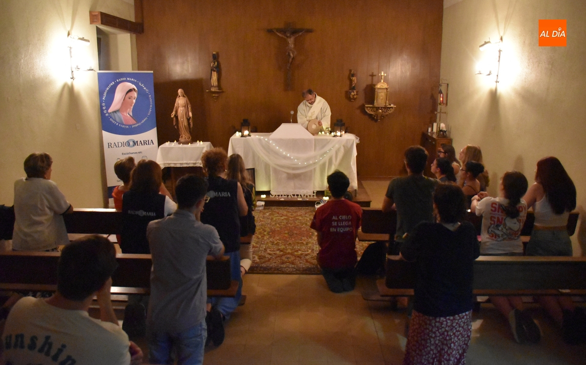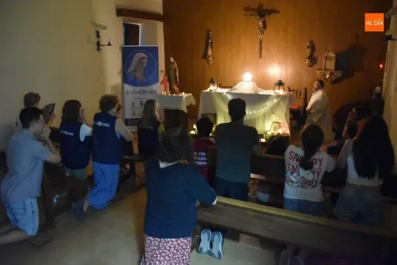 La ruta que está haciendo por la Diócesis de Ciudad Rodrigo la Reina de Radio María (la talla de madera realizada por artesanos del norte de Italia a partir de una sugerencia de emisoras de Radio María en África) de la mano del Grupo de Voluntarias Virgen de la Peña de Francia de la emisora continuó a primera hora de la noche del viernes en Ciudad Rodrigo, donde fue recibida por el grupo de jóvenes Shekinah.