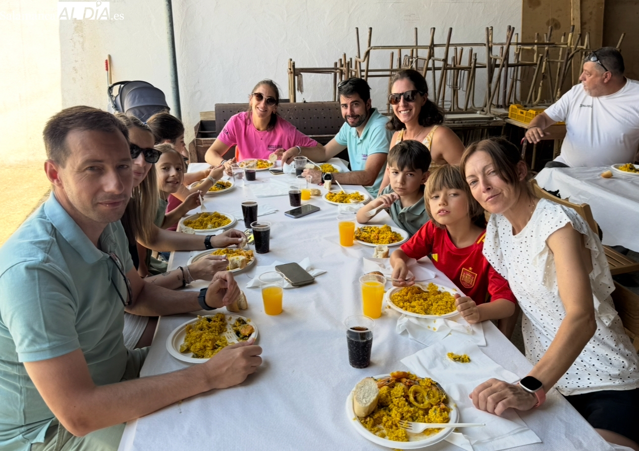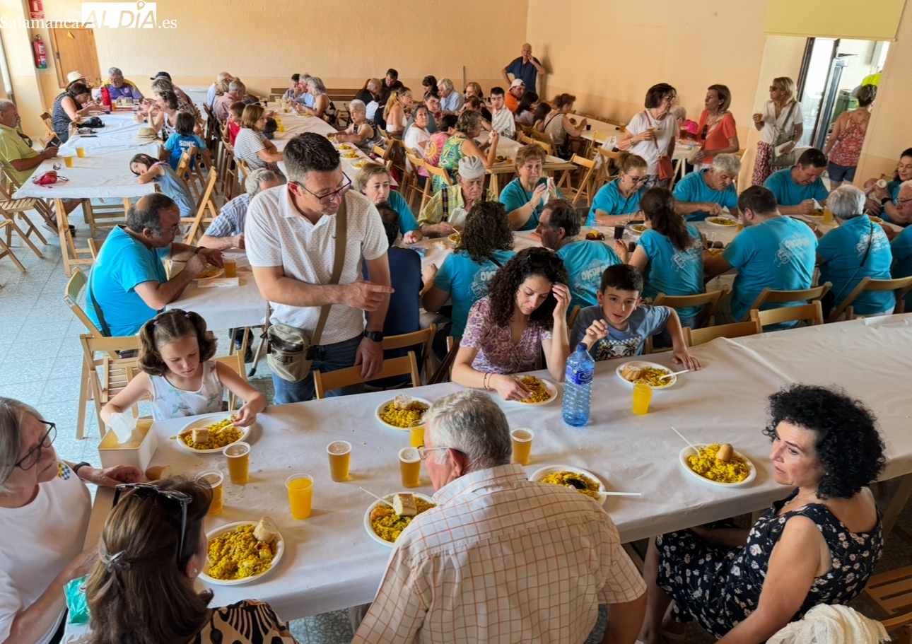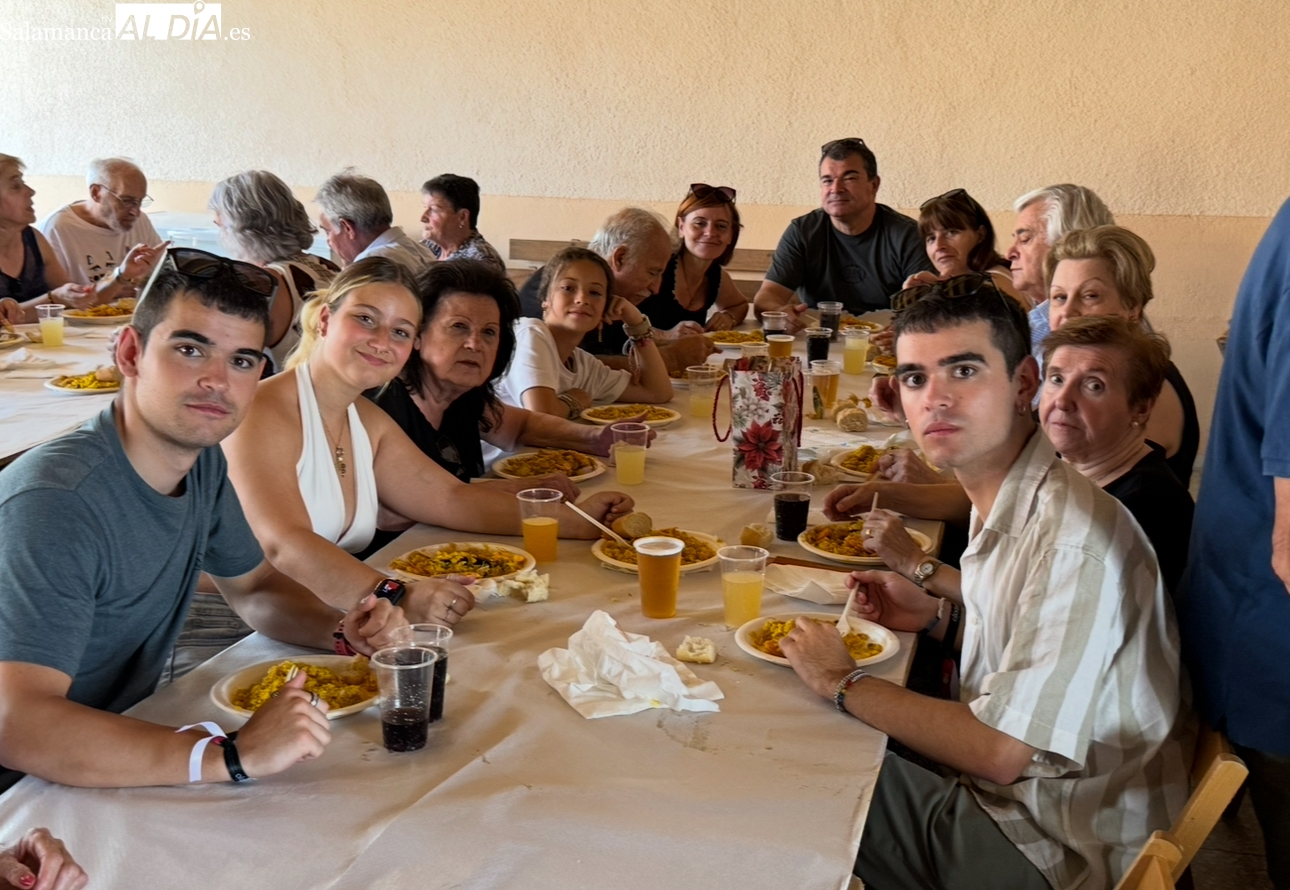Mancera de Abajo ha despedido por todo lo alto y en familia sus fiestas patronales en honor a la Virgen del Rosario con una gran paellada solidaria con Cruz Roja, acto que ha repartido cerca de 400 platos, generando largas colas y mesas llenas de vecinos y ambiente desde las tres de la tarde.