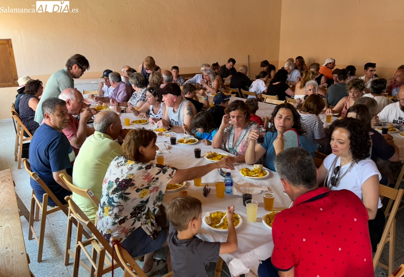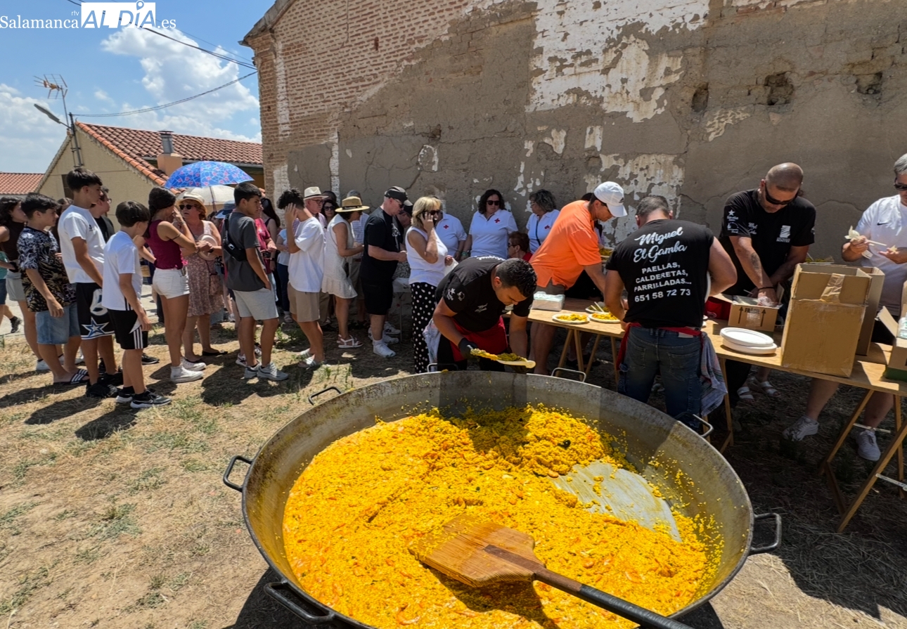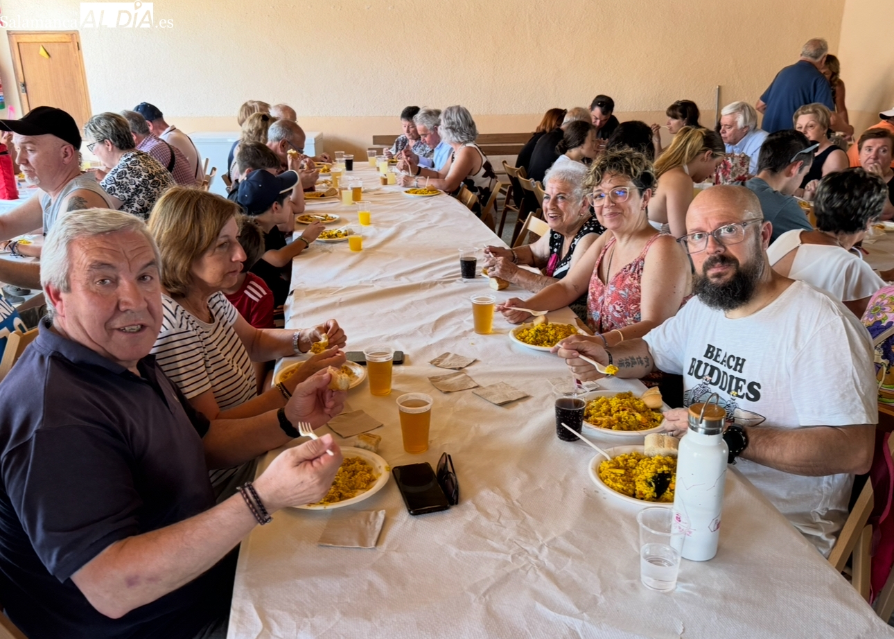 Mancera de Abajo ha despedido por todo lo alto y en familia sus fiestas patronales en honor a la Virgen del Rosario con una gran paellada solidaria con Cruz Roja, acto que ha repartido cerca de 400 platos, generando largas colas y mesas llenas de vecinos y ambiente desde las tres de la tarde.