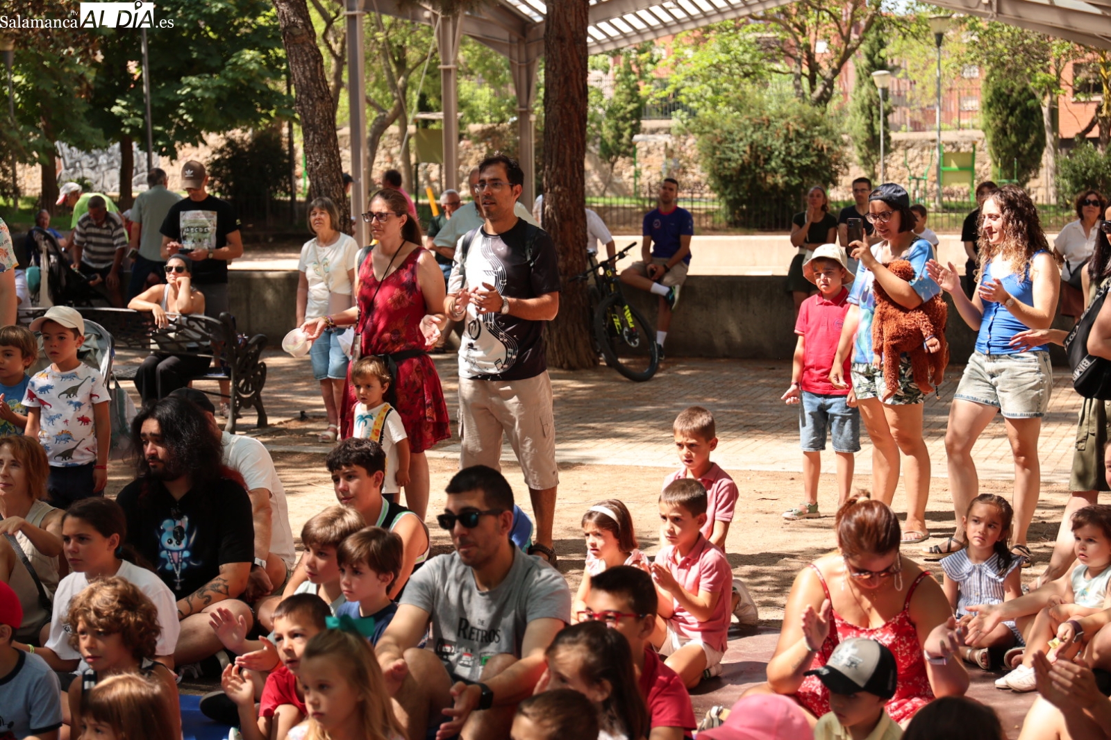 El parque Picasso se transformó este pasado domingo, 6 de julio, en un escenario de culturas y relatos de todo el mundo. A las 12:00 horas, la compañía La Risa de la Tortuga presentó su espectáculo 'Allá donde fueres. Historias y música', una propuesta que invitó a las familias salmantinas a emprender un viaje sensorial sin moverse del sitio.