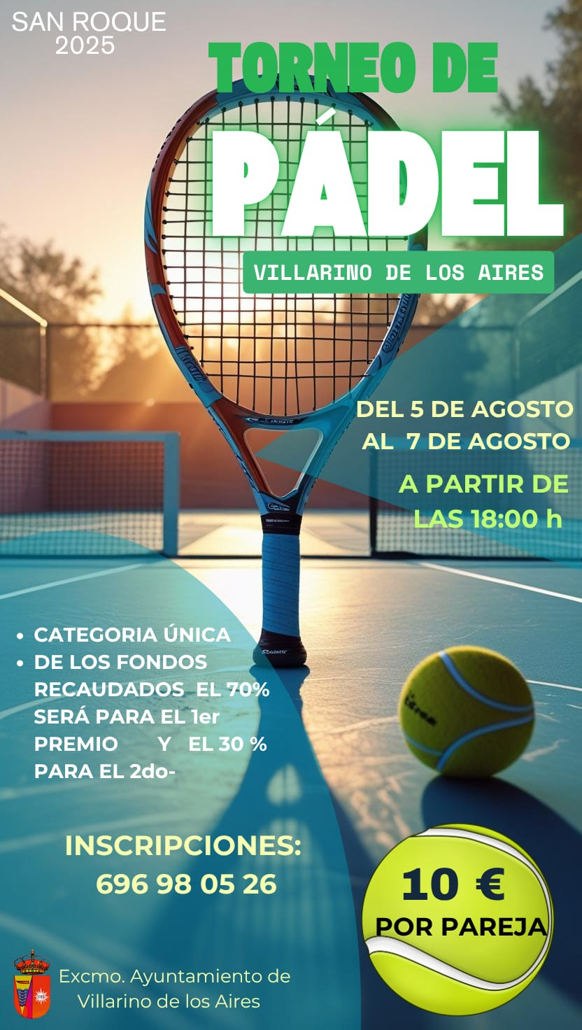 El martes 5 de agosto la jornada deportiva será doble. A las 11:00 horas, los más pequeños serán los protagonistas con el concurso de natación infantil en las piscinas municipales. Por la tarde, a partir de las 18:00 horas, arrancará el torneo de pádel, que se extenderá hasta el jueves 7 de agosto.