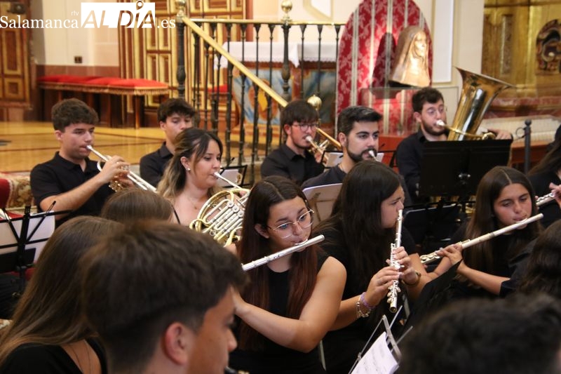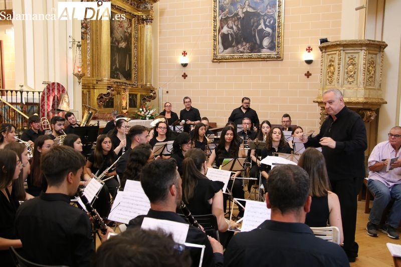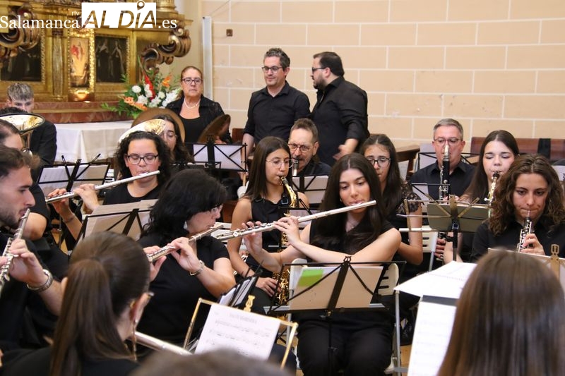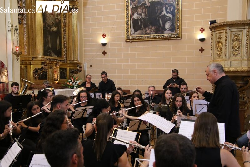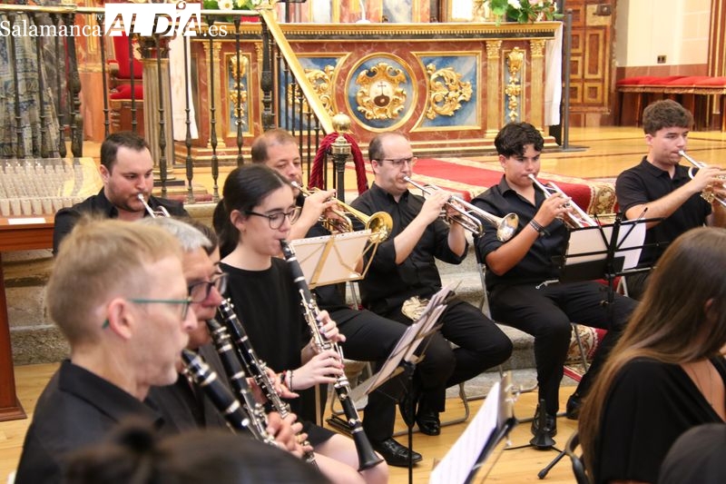 La Banda de Música de Alba de Tormes, dirigida por Mario Vercher y con la soprano María Fontanillo, protagonizó un exitoso concierto de himnos teresianos que abarrotó la Basílica de la Anunciación.