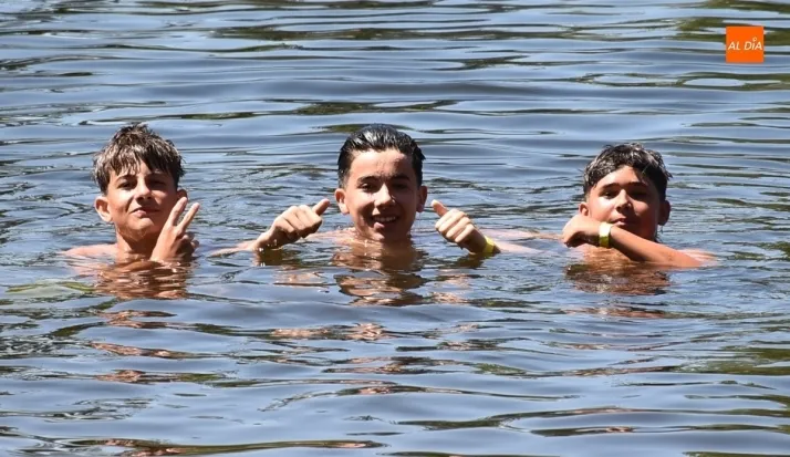 Esos trayectos suelen tener paradas en la zona de La Pesquera, lo que es aprovechado por ejemplo para darse un chapuzón, como hicieron en la mañana del martes los tres jóvenes de las imágenes, participantes en el Miróbriga Campus.