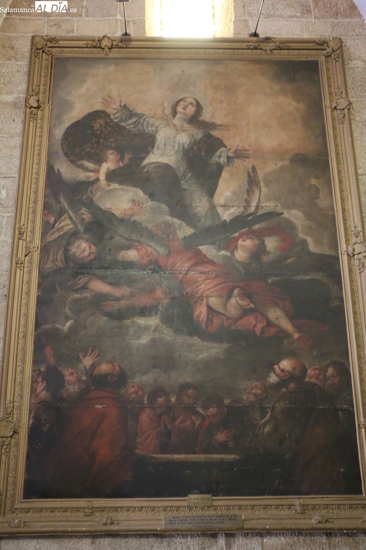 La Fundación Inés Luna Terrero ha destinado 70.000 euros para la restauración de 'La Asunción de la Virgen', un monumental lienzo del pintor barroco Juan Martín Cabezalero que se encuentra en la iglesia de Vitigudino. La obra, en un estado de conservación crítico, será sometida a un complejo proceso que, además de devolverle su esplendor, buscará confirmar científicamente su autoría.