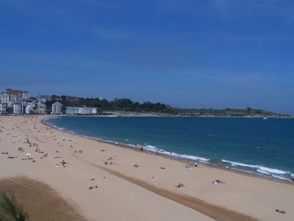 Viajando hacia el oeste, a unos 370 kilómetros, Gijón ofrece su playa más icónica: San Lorenzo. Enclavada en el corazón de la ciudad, esta playa en forma de concha es la más tradicional y extensa del municipio asturiano.
