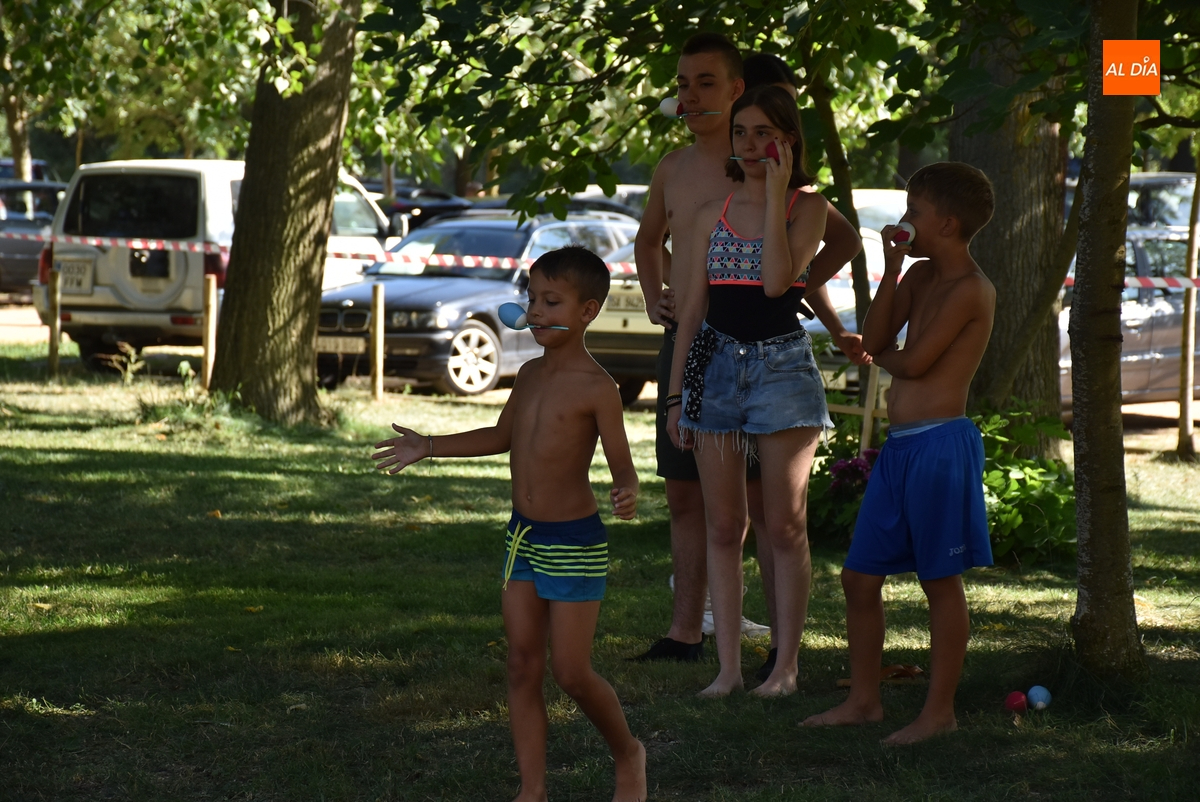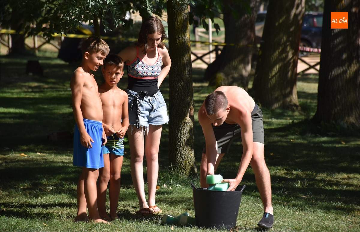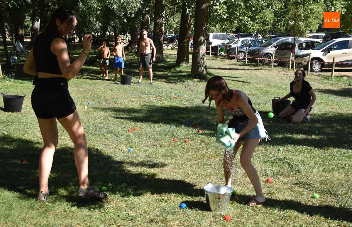 Concluido el escape room, participantes y monitoras prolongaron la diversión lanzándose bolas mojadas.
