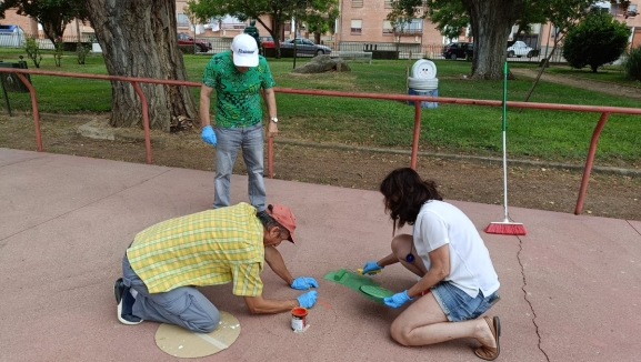 Sara Revesado, monitora de Asprodes, ha animado a la participación ciudadana. "Seguimos trabajando en nuestro Proyecto Inclusivo y Sostenible, esta vez estamos pintando juegos tradicionales sobre el suelo", explica. "La inauguración será el día 31 de Julio a las 10:30 de la mañana. Invitamos a todos los vecinos a que nos acompañen".