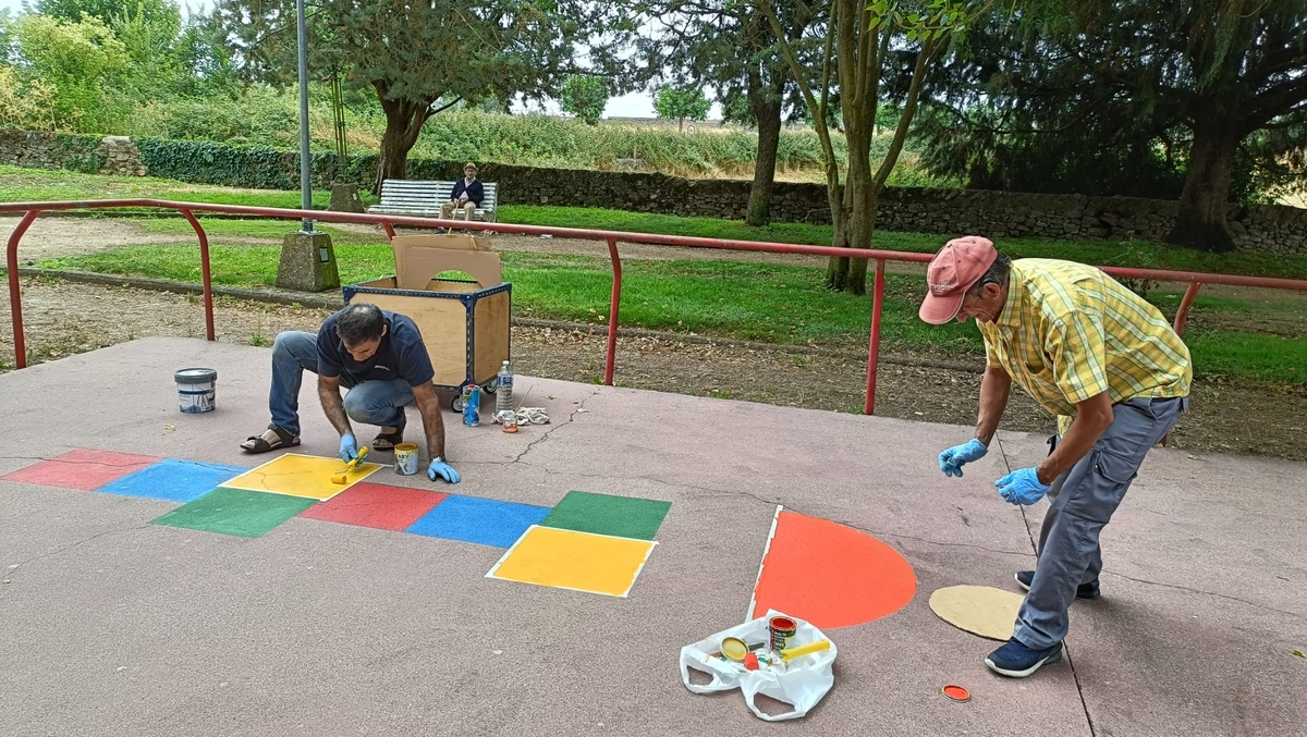 El centro de Asprodes en Vitigudino, en colaboración con el Ayuntamiento de Vitigudino, ha dado un nuevo impulso a su 'Proyecto Inclusivo y Sostenible'. La última de sus acciones ha sido la creación de un espacio lúdico en el Parque San Nicolás, donde han pintado en el suelo juegos tradicionales de toda la vida.