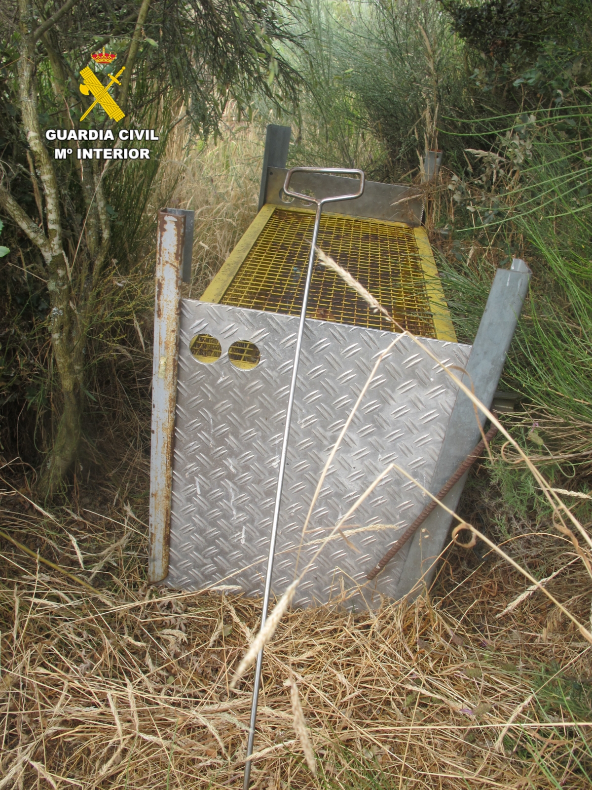 Como consecuencia de las actuaciones, los investigadores del SEPRONA se desplazaron al lugar y localizaron la citada jaula, que en ese momento se encontraba vacía pero lista para ser usada de nuevo. Durante una exhaustiva inspección de la zona, los agentes encontraron un estoque, un arma puntiaguda para rematar a los animales en la jaula, que presentaba restos de sangre.