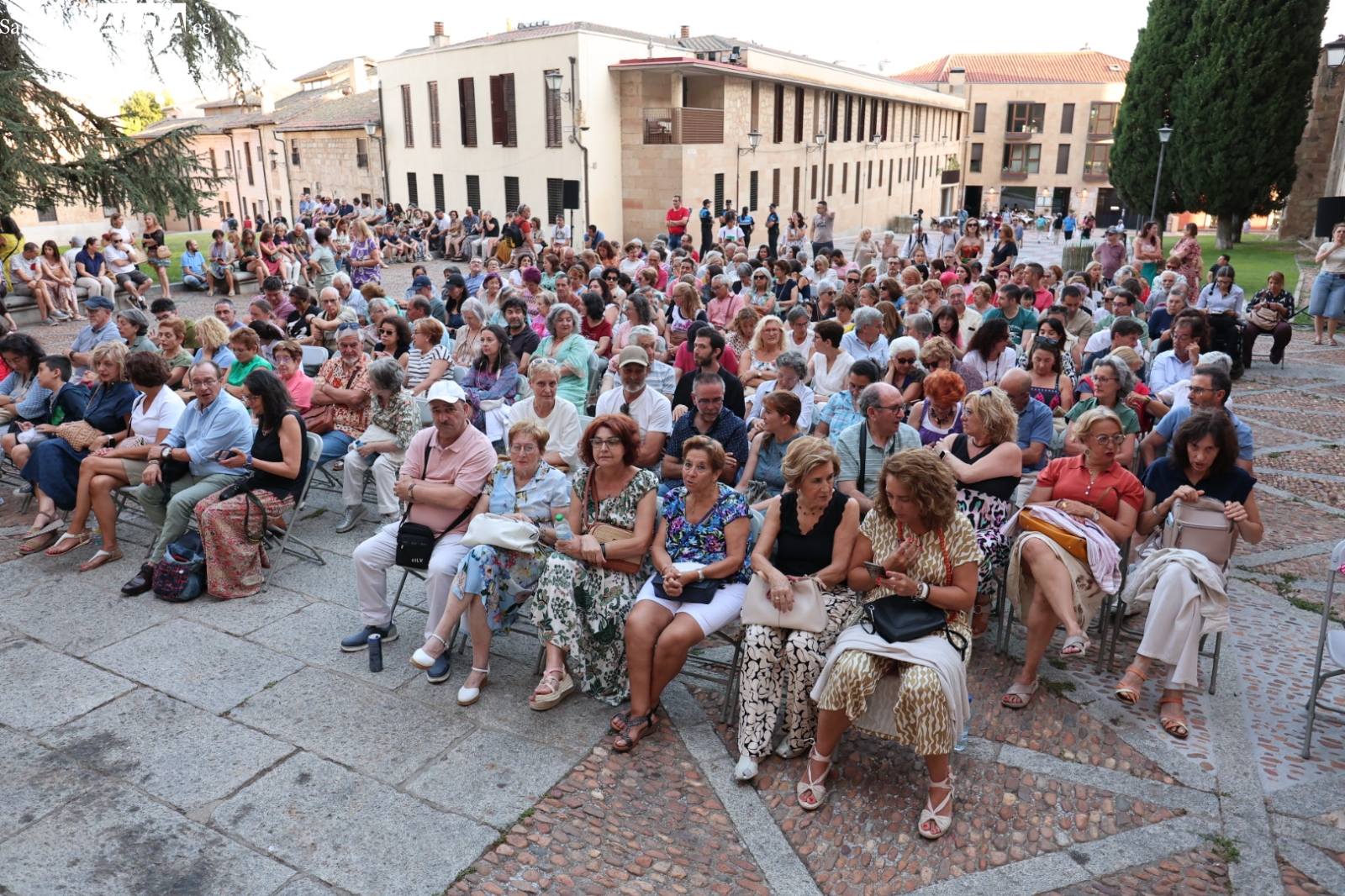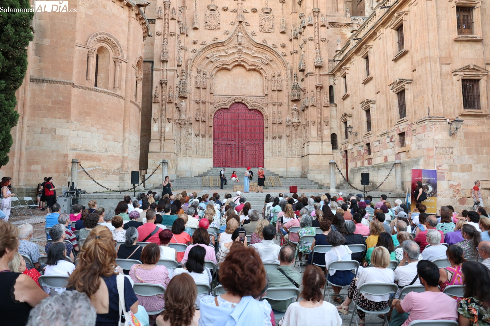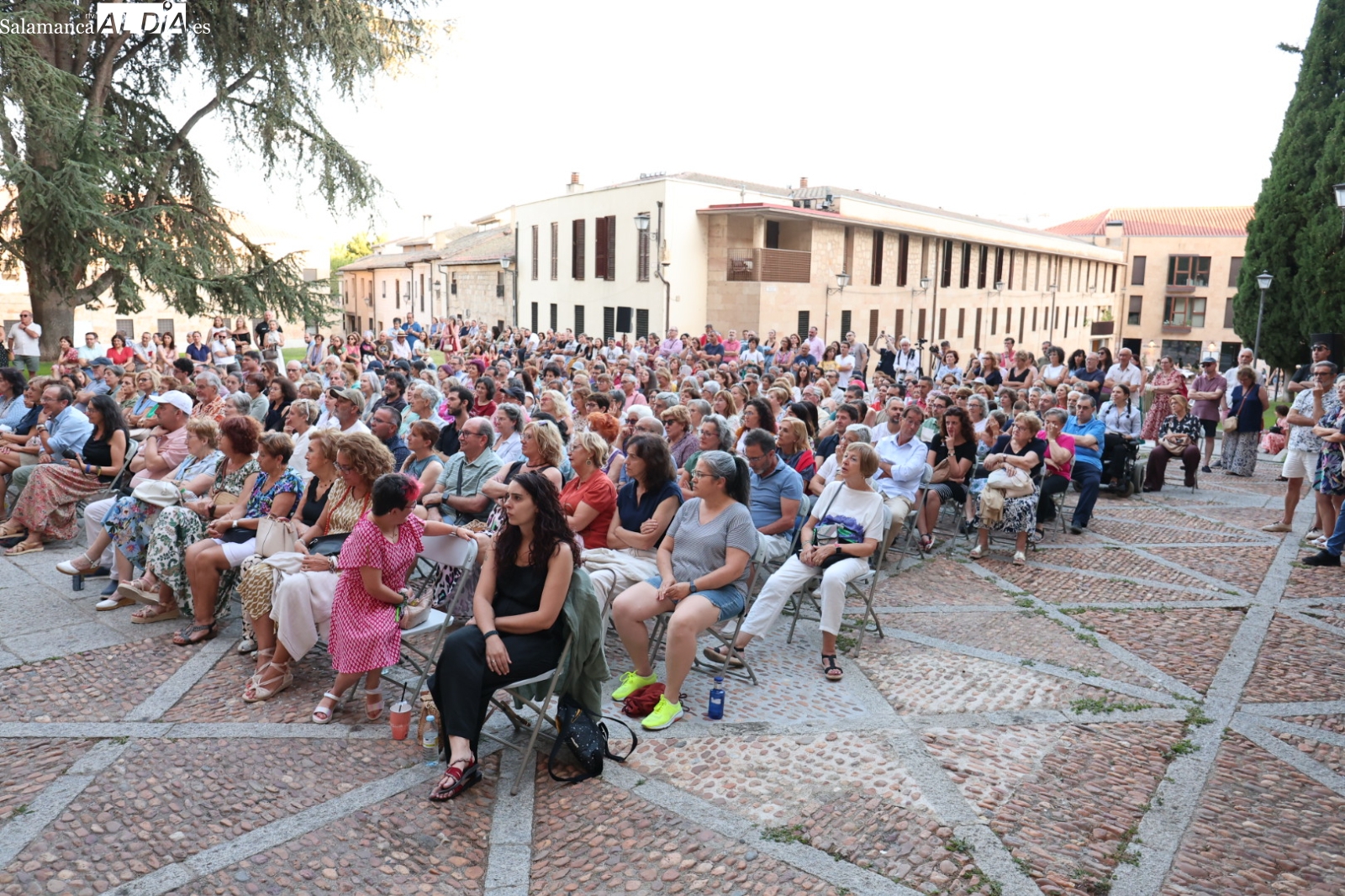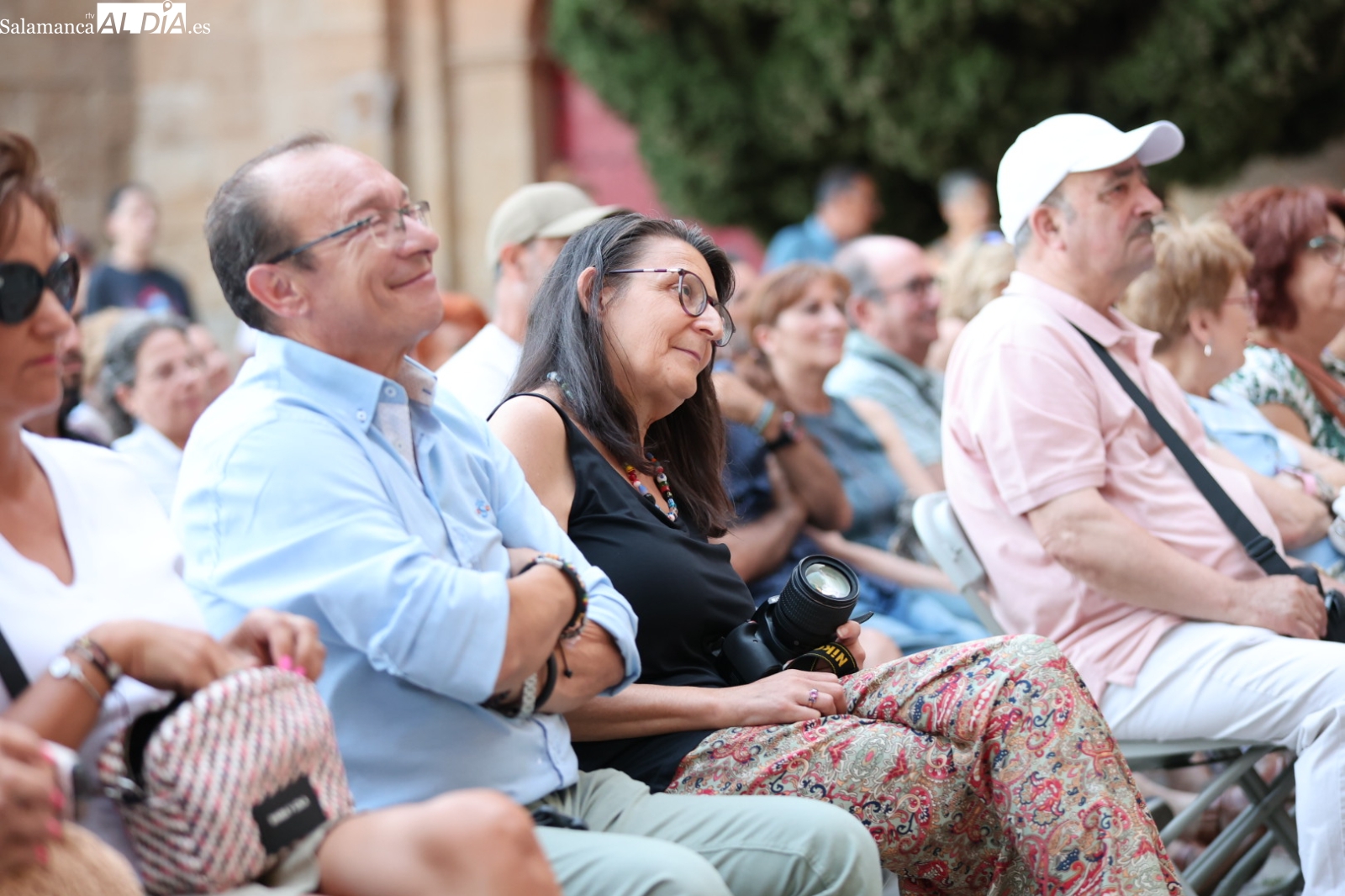 El Patio Chico de Salamanca ha sido el escenario en la noche de este viernes del estreno de la obra de teatro 'Carmen Martín Gaite (Calila): Escritora y Actriz'. La representación, enmarcada en el exitoso ciclo cultural de verano Plazas y Patios, congregó a un numeroso público que disfrutó y se emocionó con la propuesta escénica.