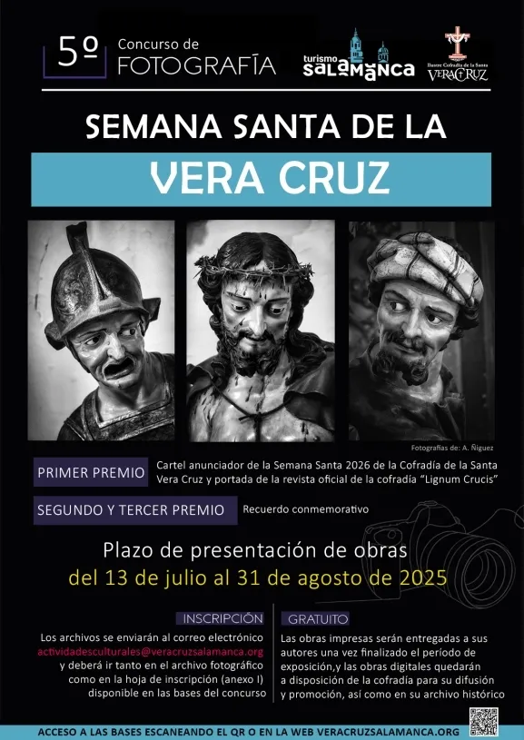 Un verano más, la Ilustre Cofradía de la Santa Cruz del Redentor y de la Purísima Concepción, su Madre, (Vera Cruz), ha lanzado la convocatoria de su ya consolidado certamen fotográfico. Se trata de la quinta edición del concurso "Semana Santa de la Vera Cruz", una cita ineludible para los amantes de la fotografía y de la Pasión salmantina.
