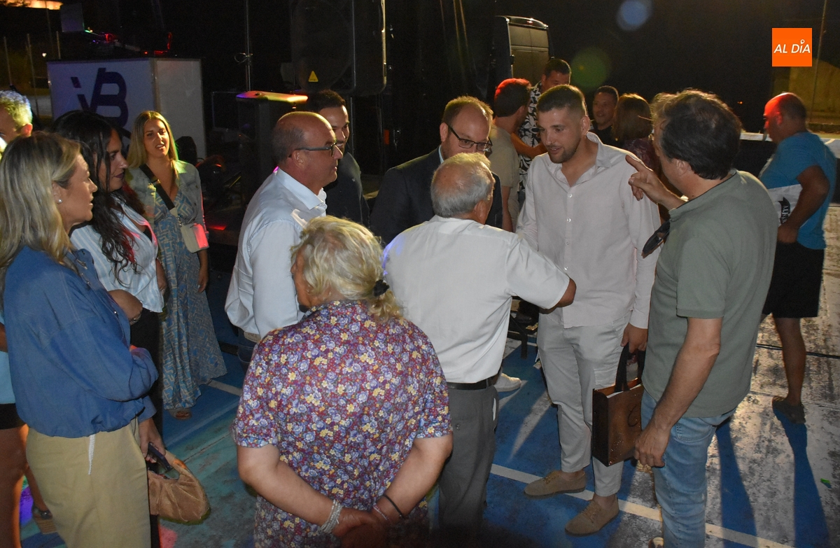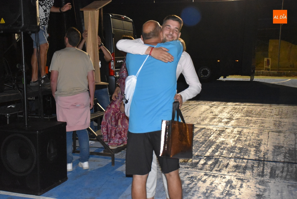 Finalizado el pregón, Pipe Martín fue obsequiado por la Directiva de la Asociación de Vecinos antes de recibir las felicitaciones de la Corporación Municipal, de familiares y de numerosos amigos, y de subir una segunda vez al escenario para proponer a una persona para dar el pregón de las fiestas del año que viene: Amparo Marcos, quién también subió al escenario para aceptar la invitación, asegurando que “me encanta”.