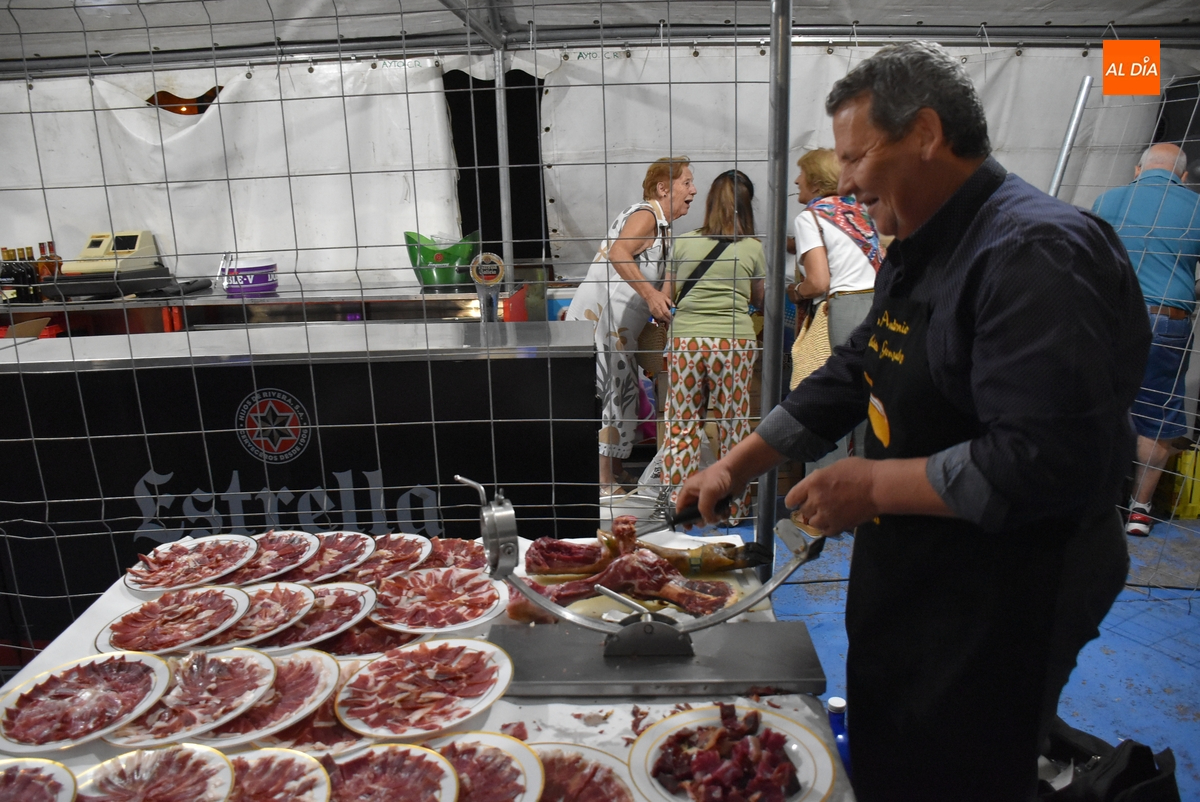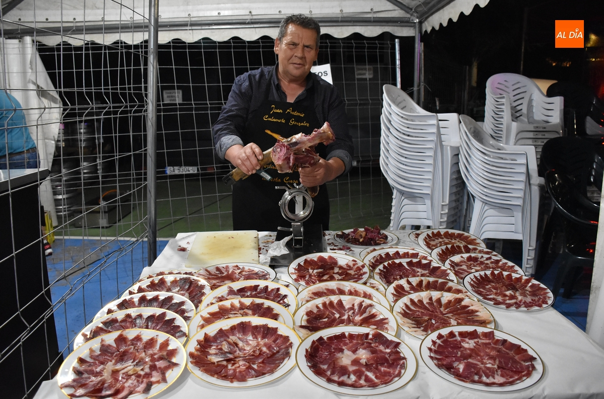 A partir de ahí, comenzó a sonar la música de la Discomóvil Vibrass, mientras todos los presentes iban tomando algo en la barra de bar situada bajo una carpa, teniendo la oportunidad además de degustar de forma gratuita el jamón que cortó in situ, tras haberlo donado él mismo, Juan Calamote.