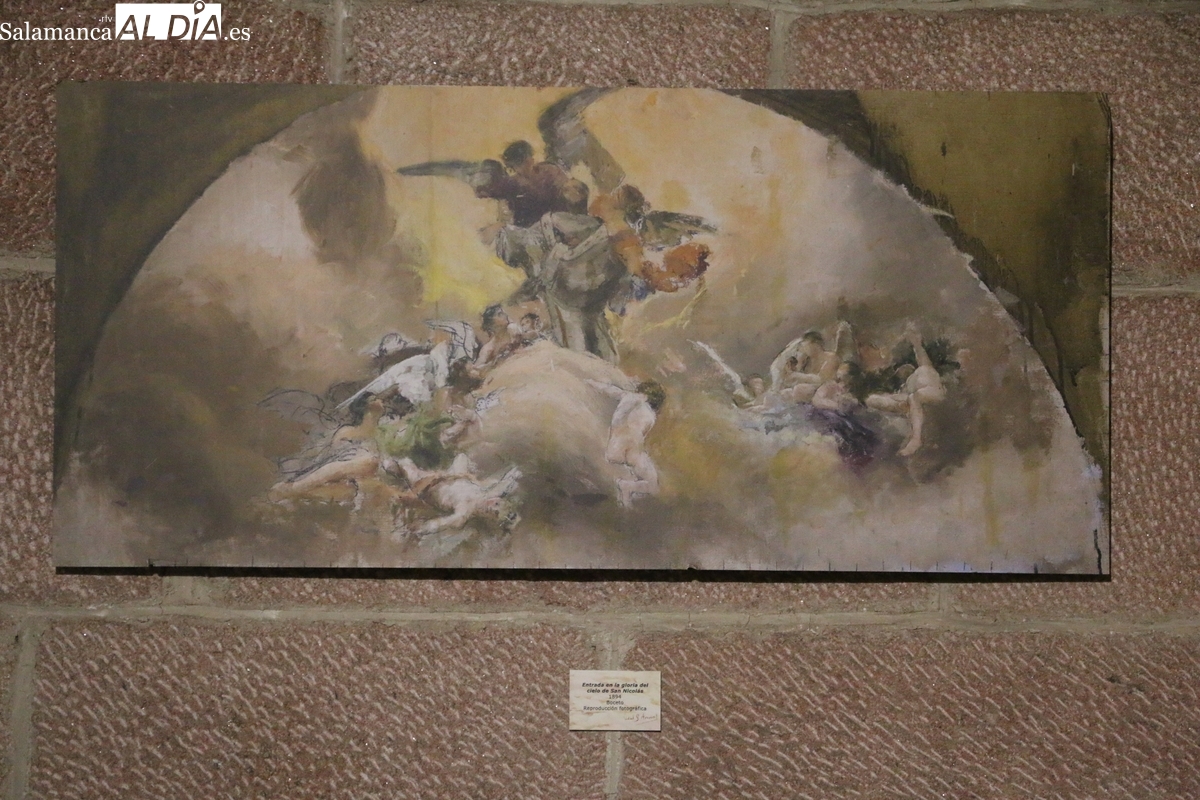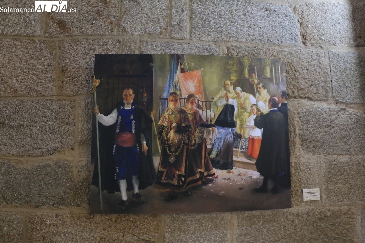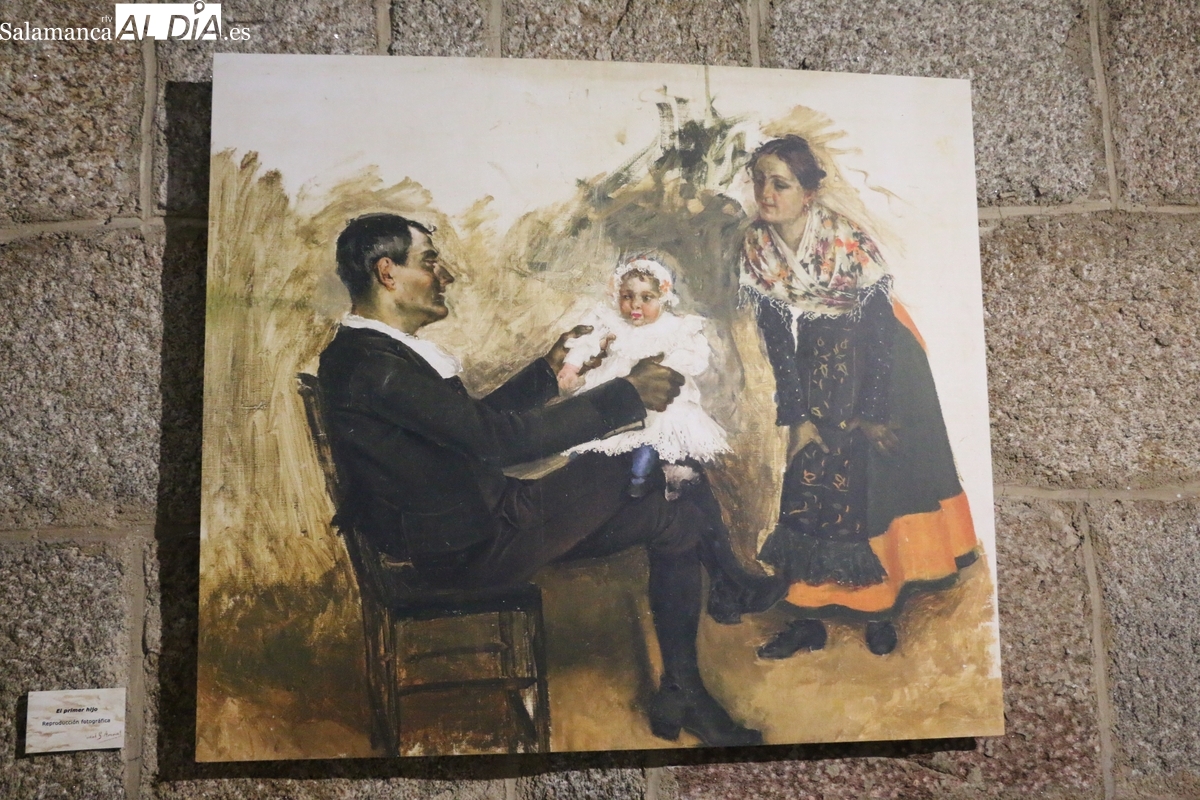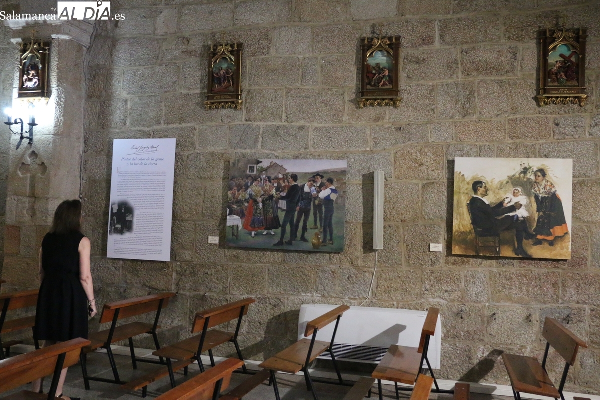 A este núcleo central se ha sumado una importante aportación del Ayuntamiento de Vitigudino. La contribución municipal enriquece la muestra con la réplica fotográfica a gran escala de ocho cuadros del pintor, muchos de ellos de temática costumbrista, como 'El baile de la rosca', 'La carrera de gallos', 'Un ofertorio en la iglesia de La Alberca', 'Salida de los novios de la iglesia' o 'El primer hijo', además de la obra religiosa 'La Deposición de Cristo'. En el altar, se pueden contemplar también las reproducciones de los dos bocetos que el artista realizó para el retablo mayor de la propia iglesia, titulados 'El Milagro de San Nicolás'.