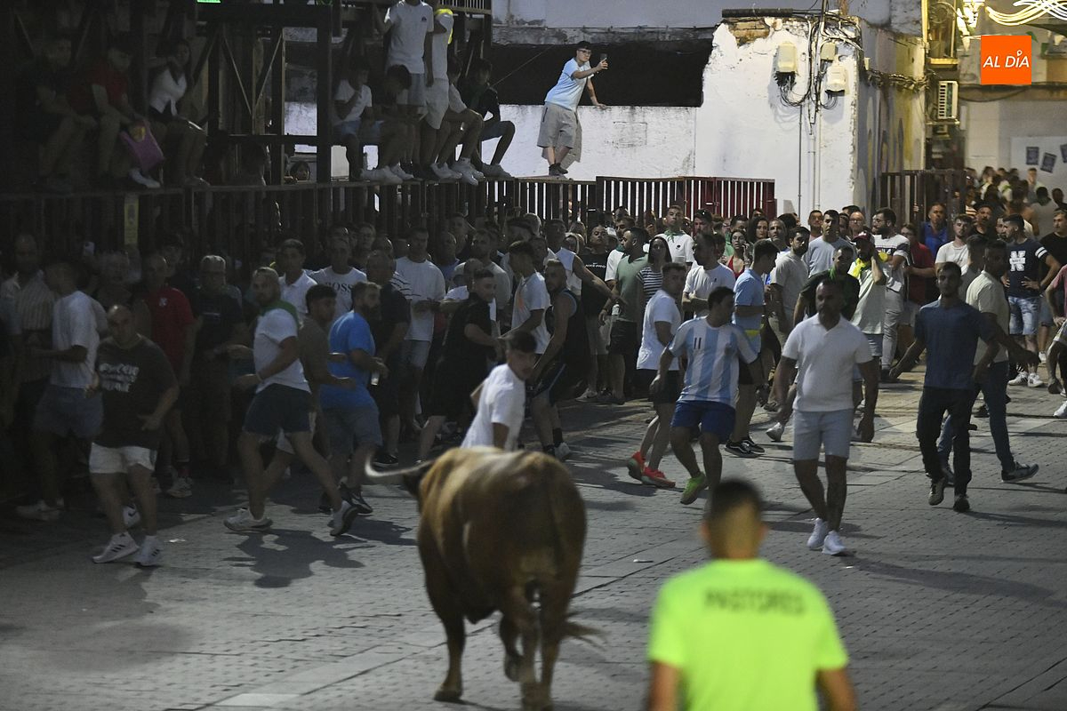 El toro ofreció un espectáculo excepcional, recorriendo en varias ocasiones el itinerario establecido, ante la admiración de los asistentes. Finalmente, el animal mostró cierta querencia por el área de toriles, atraído por un colchón de arena dispuesto en ese lugar, lo que limitó sus desplazamientos posteriores. Tras los 45 minutos reglamentarios, los pastores lo condujeron con destreza hasta los corrales para poner fin a su recorrido y darle el merecido descanso.