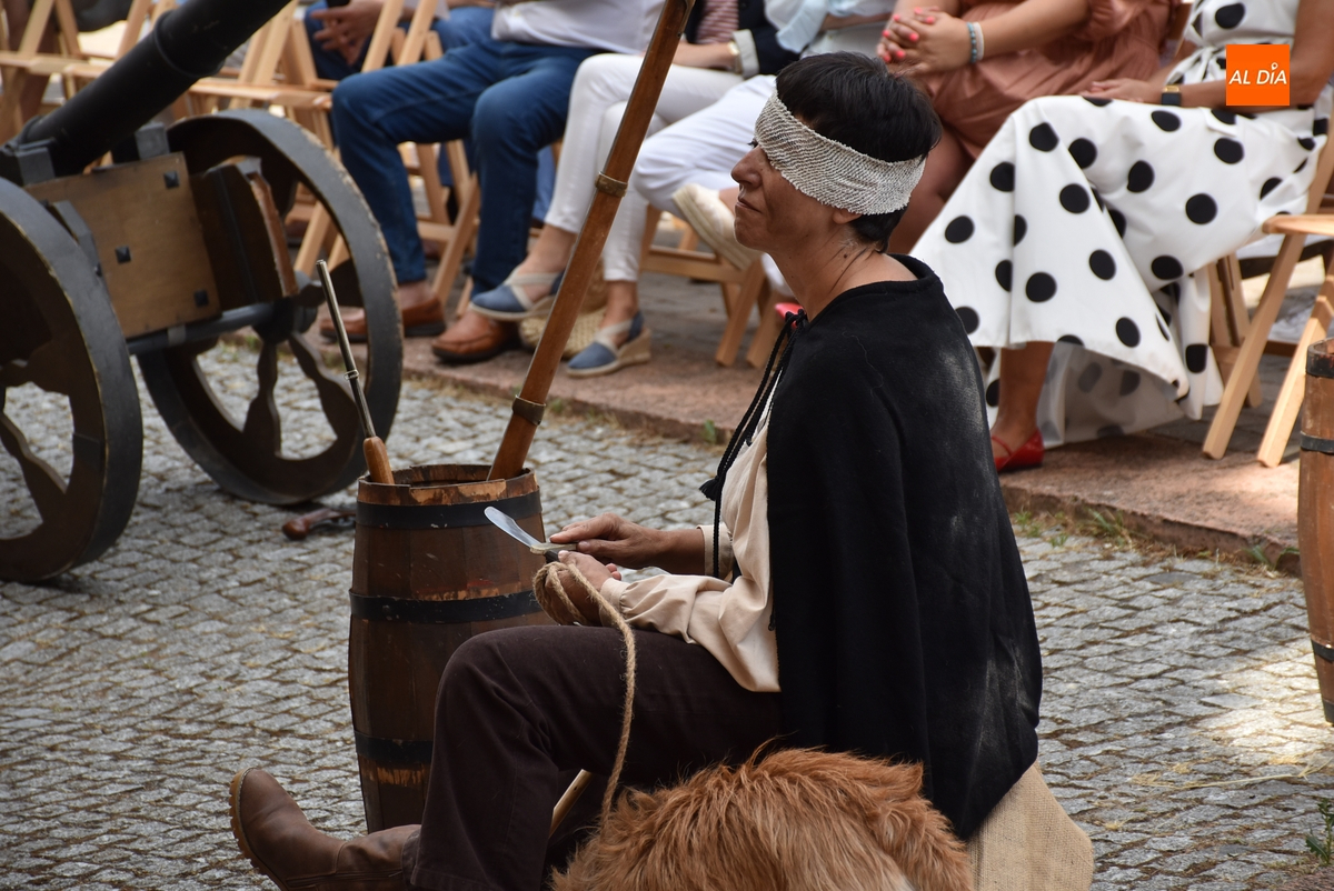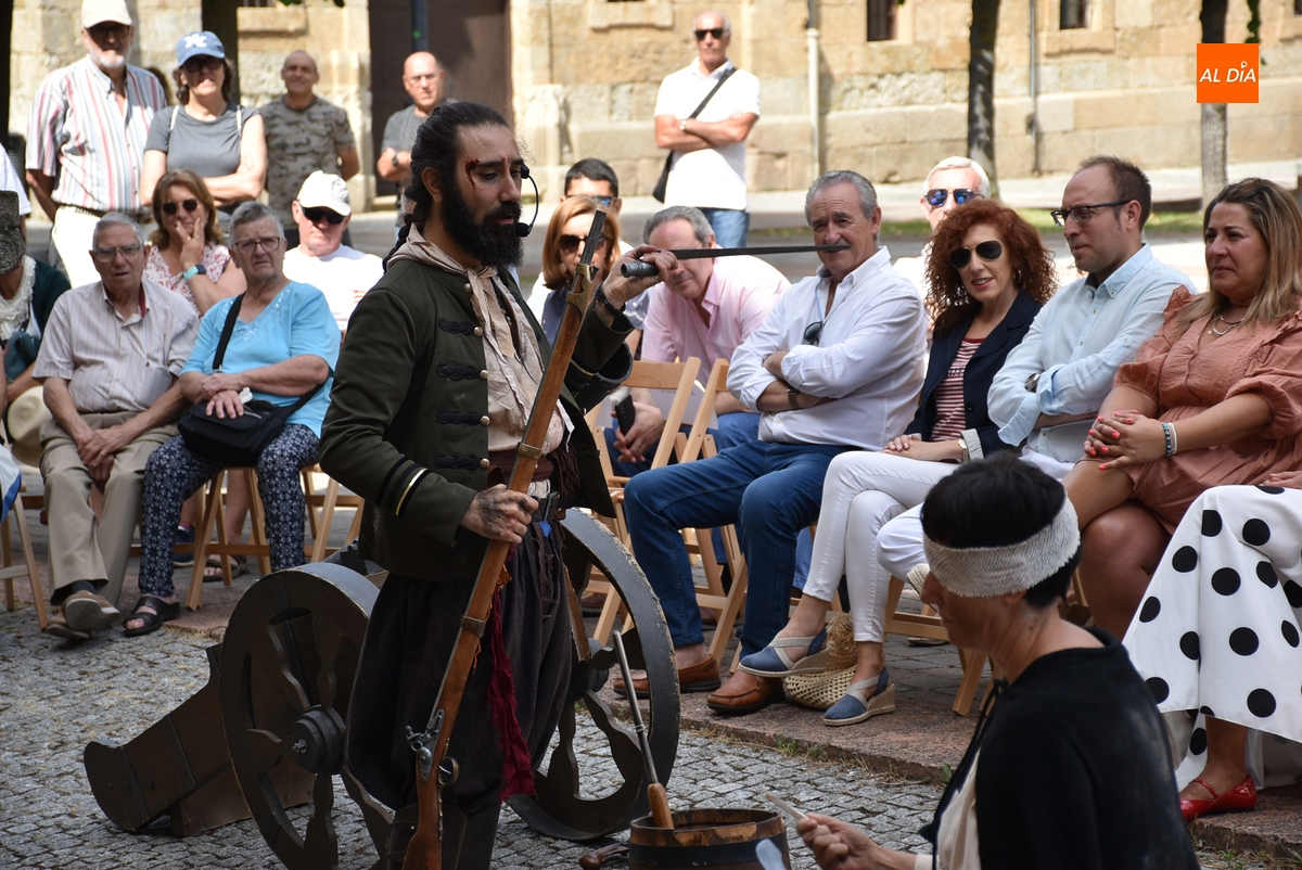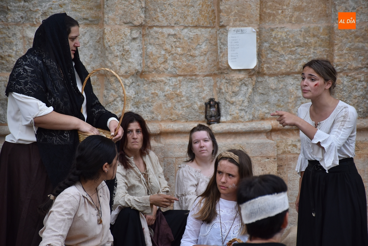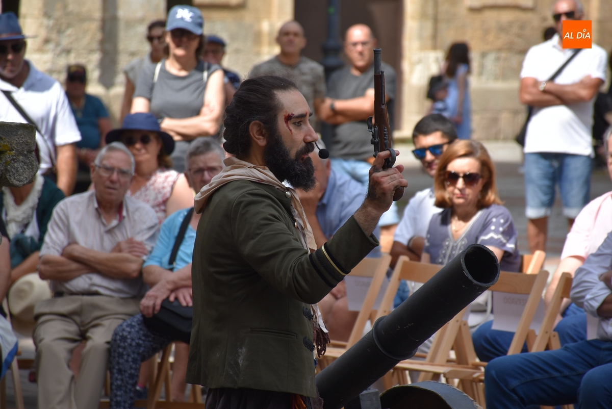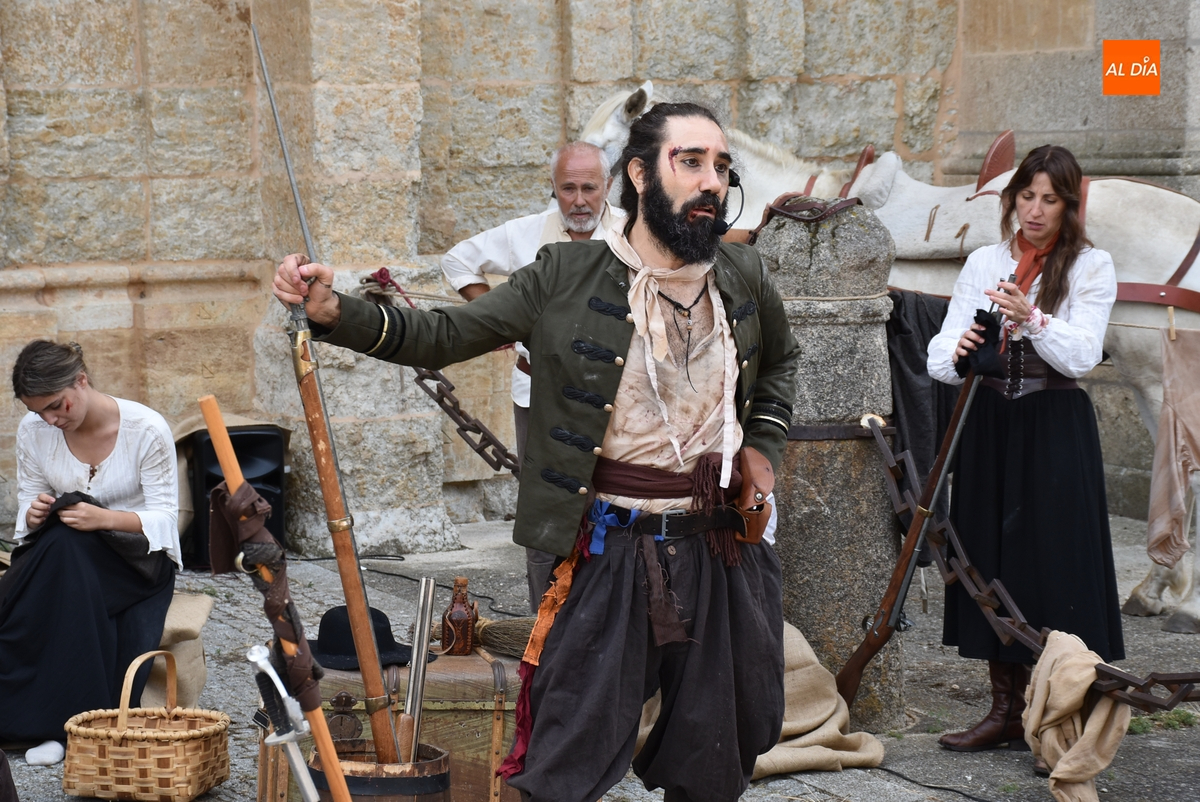 Al igual que el del sábado, este espectáculo fue comandado por el actor mirobrigense Sergio Cardoso, en este caso acompañado por sus alumnos del Taller de Teatro Intergeneracional del Ayuntamiento, metiéndose todos ellos en distintos personajes del momento histórico del asedio de las tropas francesas a Ciudad Rodrigo.