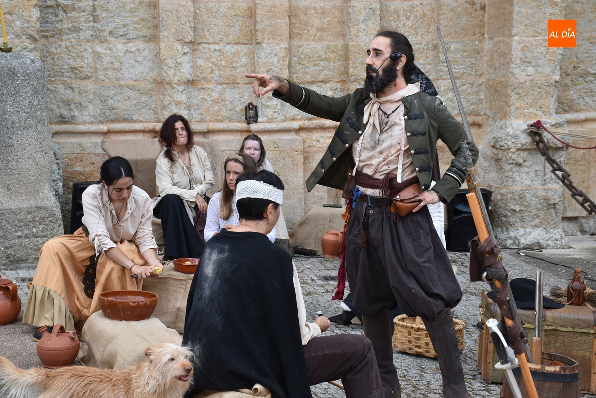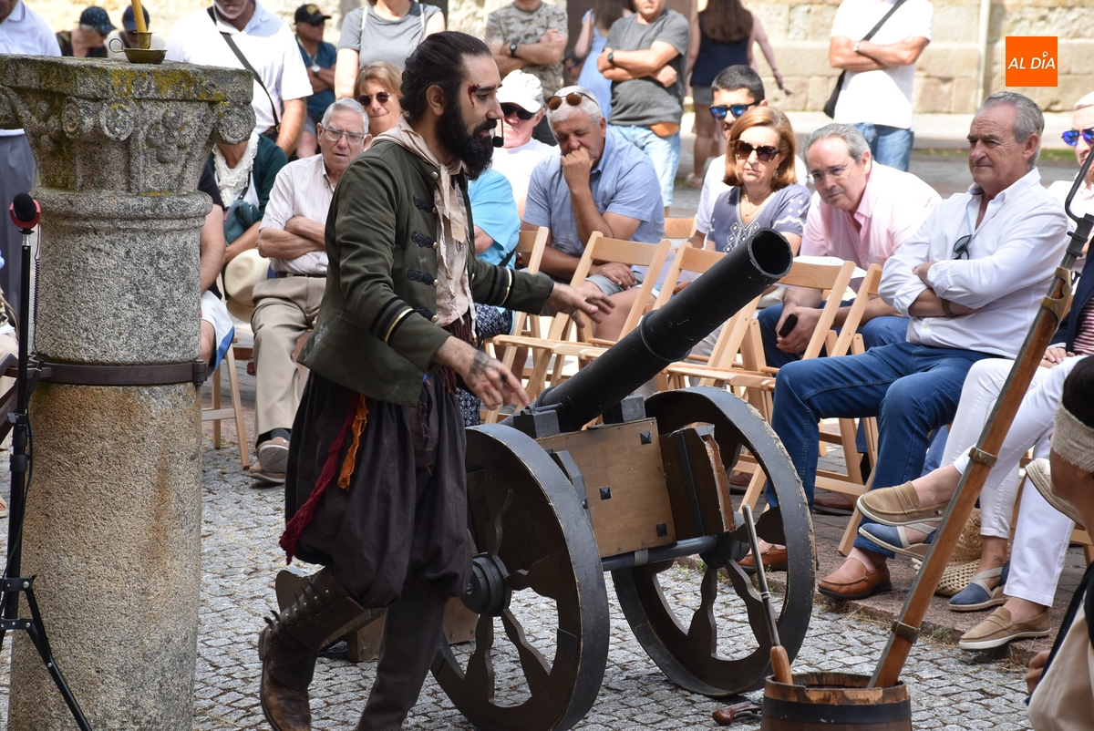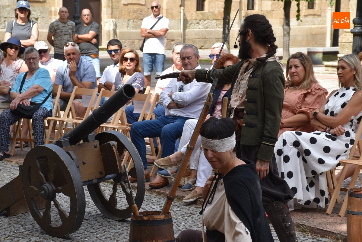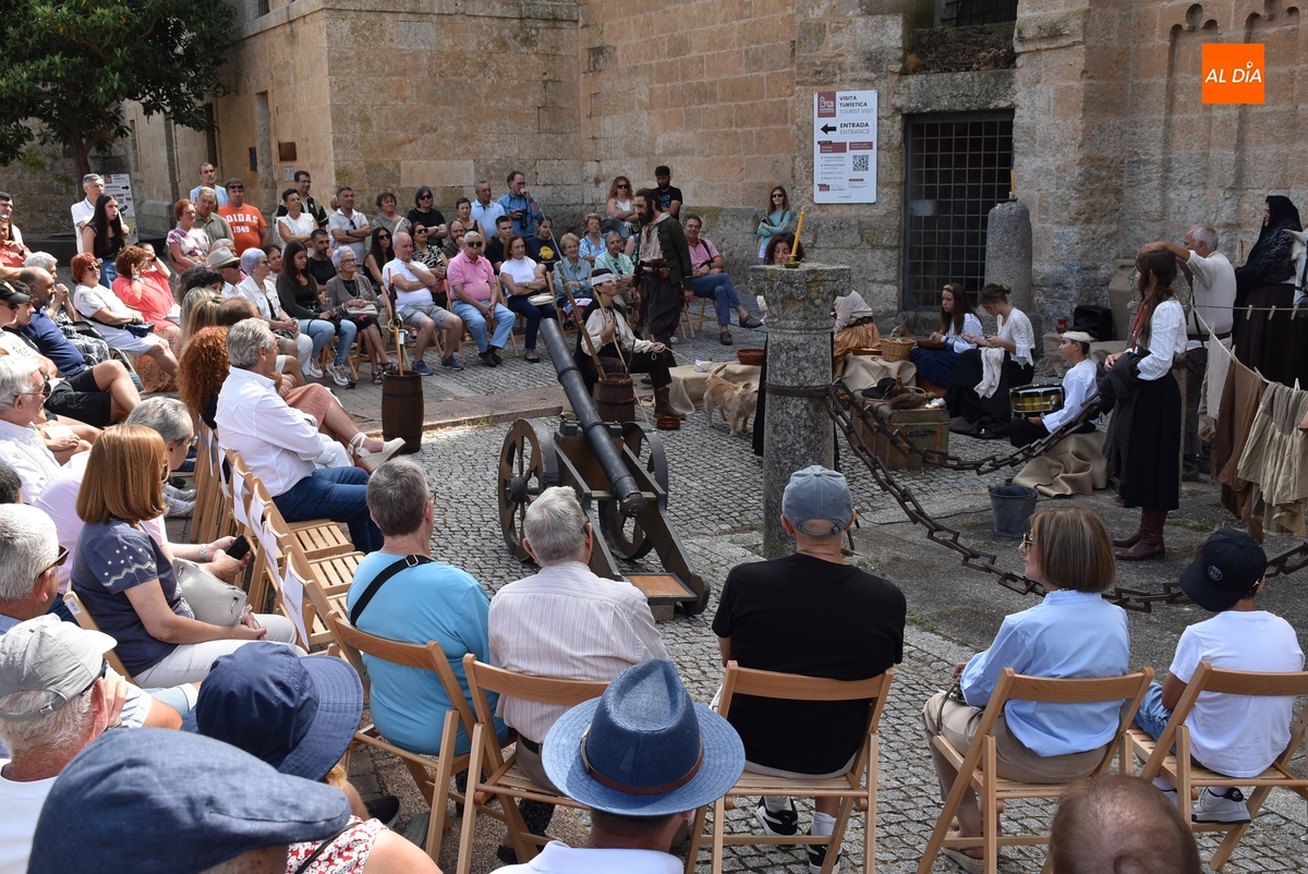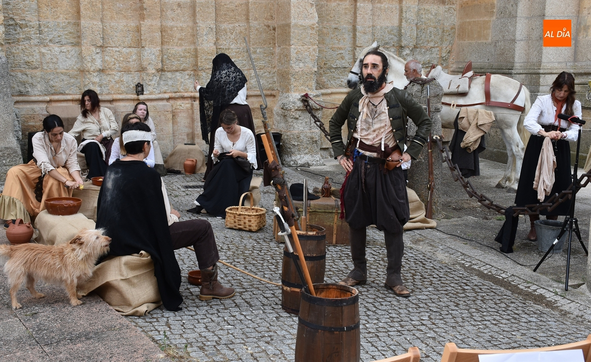 Al igual que el del sábado, este espectáculo fue comandado por el actor mirobrigense Sergio Cardoso, en este caso acompañado por sus alumnos del Taller de Teatro Intergeneracional del Ayuntamiento, metiéndose todos ellos en distintos personajes del momento histórico del asedio de las tropas francesas a Ciudad Rodrigo.