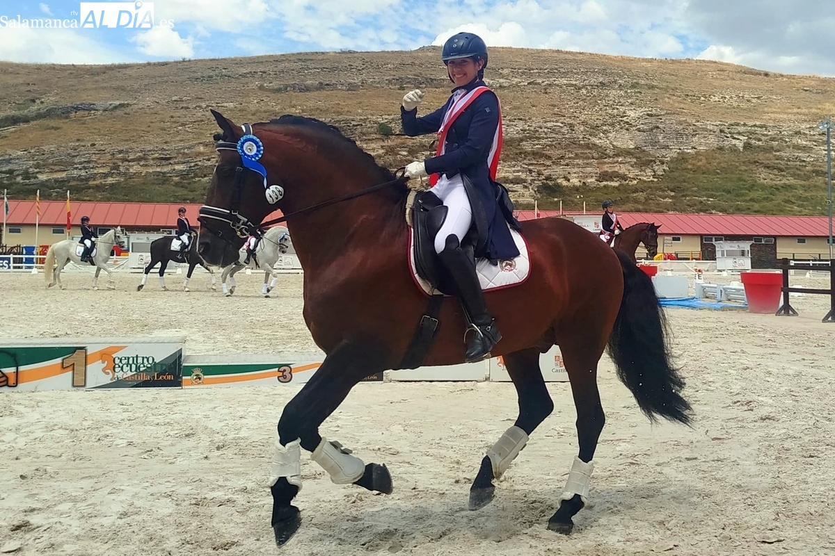 El tesón, el talento y una conexión inquebrantable con su caballo han llevado a la amazona salmantina Isabel Muñoz Carreño a lo más alto del podio. A sus 19 años, la joven de El Cubo de Don Sancho, conocida en el mundo de la hípica como ‘Muca La Vetona’, se ha proclamado este domingo, 13 de julio, campeona de Castilla y León de doma clásica en la prestigiosa categoría San Jorge YR (Jóvenes Jinetes).