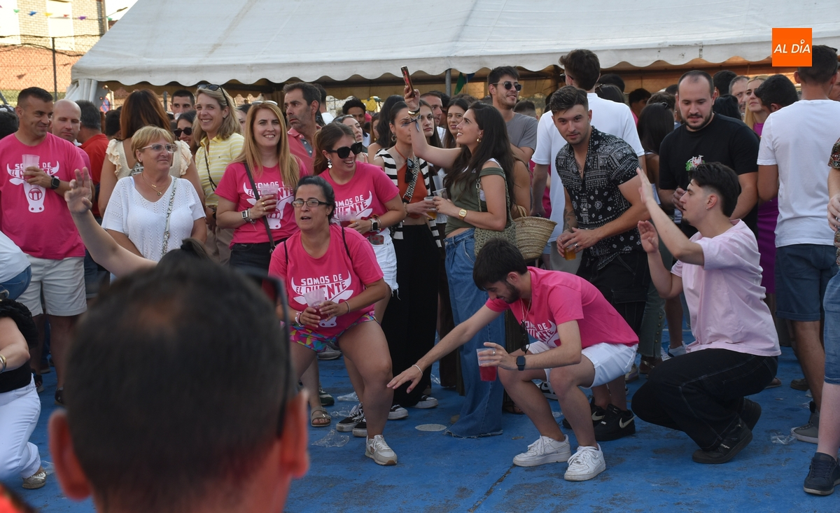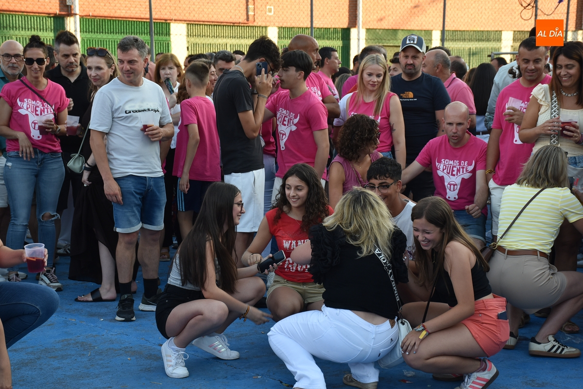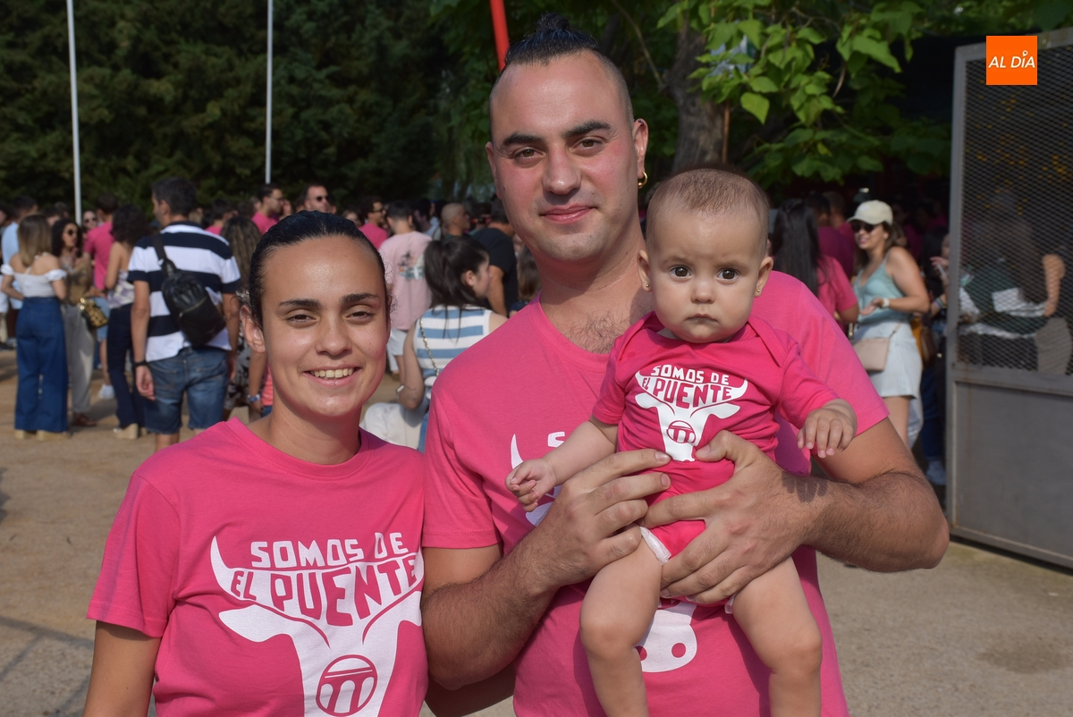 Dentro de la marea que se fue moviendo, sobresalieron las camisetas rosas con el lema Somos de El Puente que portaron todos los que han contribuido a hacer posible las fiestas de este año. Además, dentro de esa masa también se pudieron ver las camisetas de la nueva Peña 1909, que ha debutado en sociedad donando una de las vacas protagonistas de la tarde, Billetista, cuyo nombre e hierro (El Puerto de San Lorenzo) lucían en la parte trasera de las mismas.